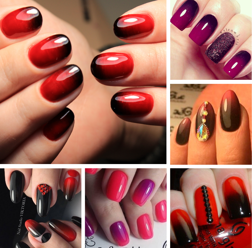 Женщины, жаждущие выделиться на фоне окружающих, часто совмещают красный и чёрный оттенок. Сочетание визуально увеличивает ноготь, делает его форму более вытянутой, изящной. Есть 2 способа комбинирования цветов: