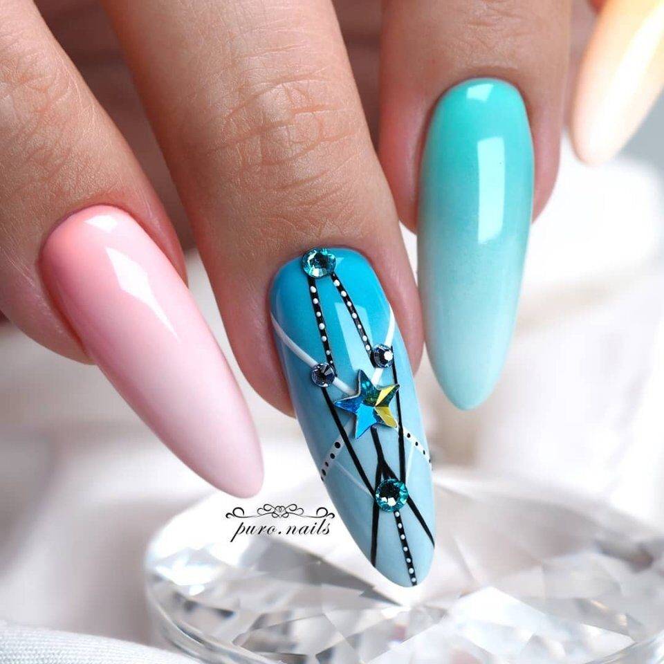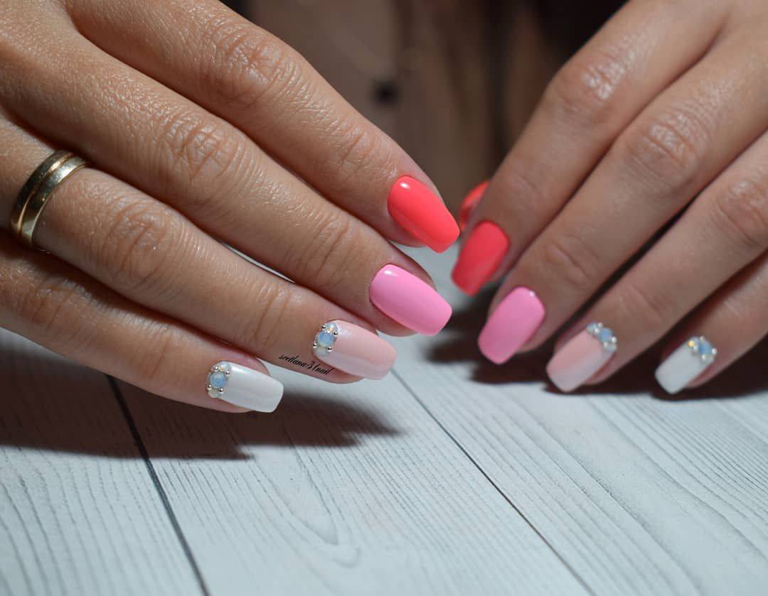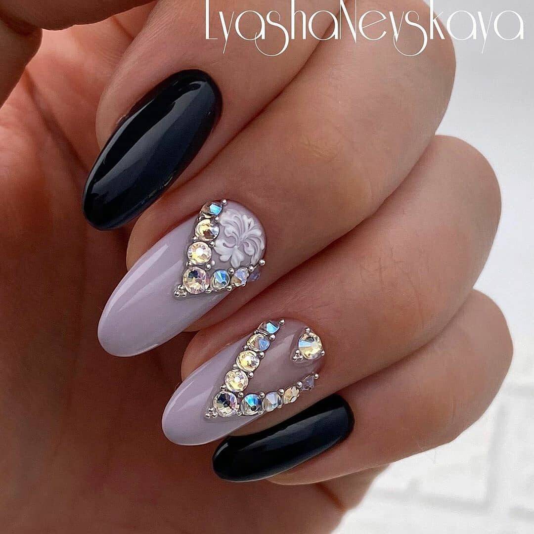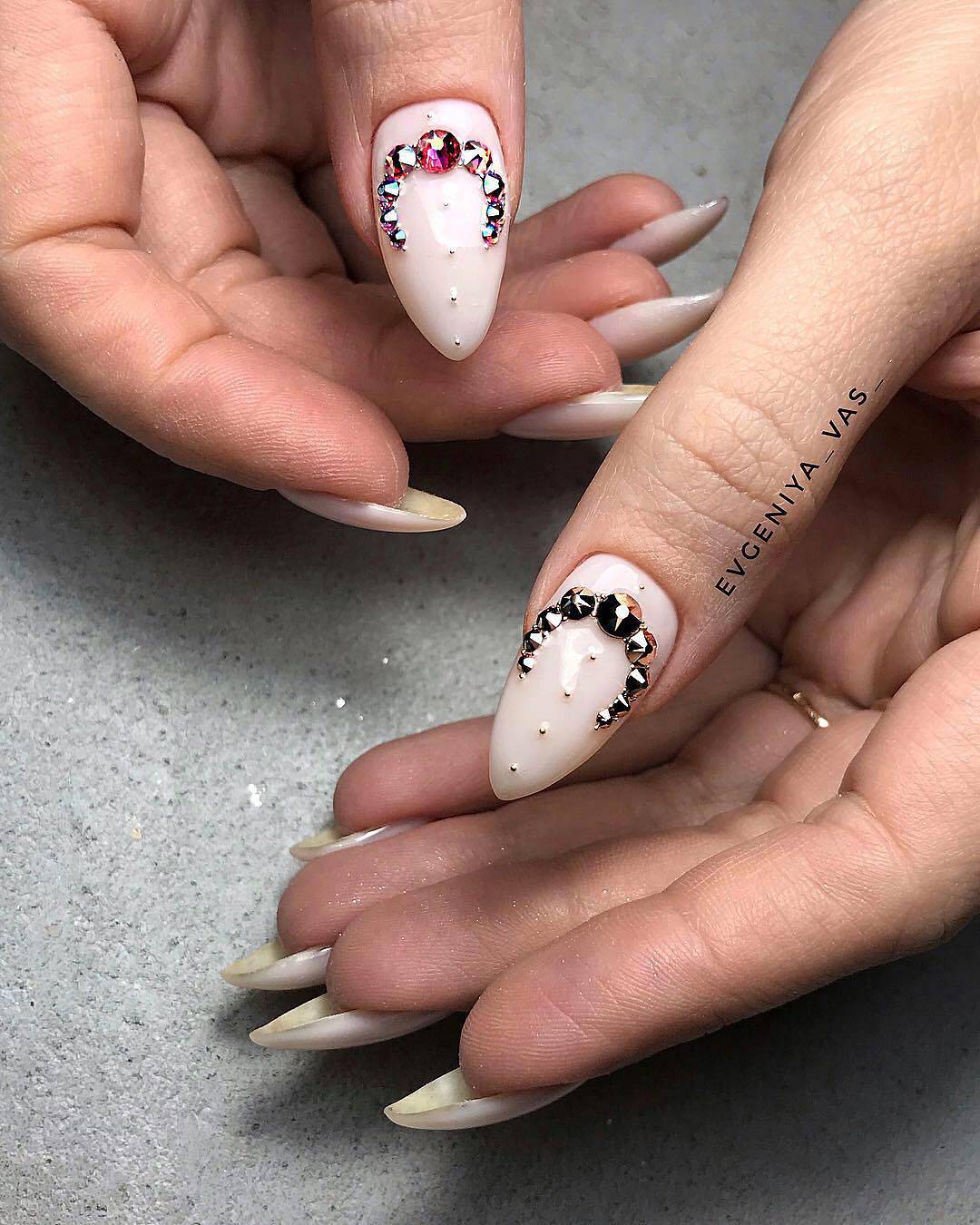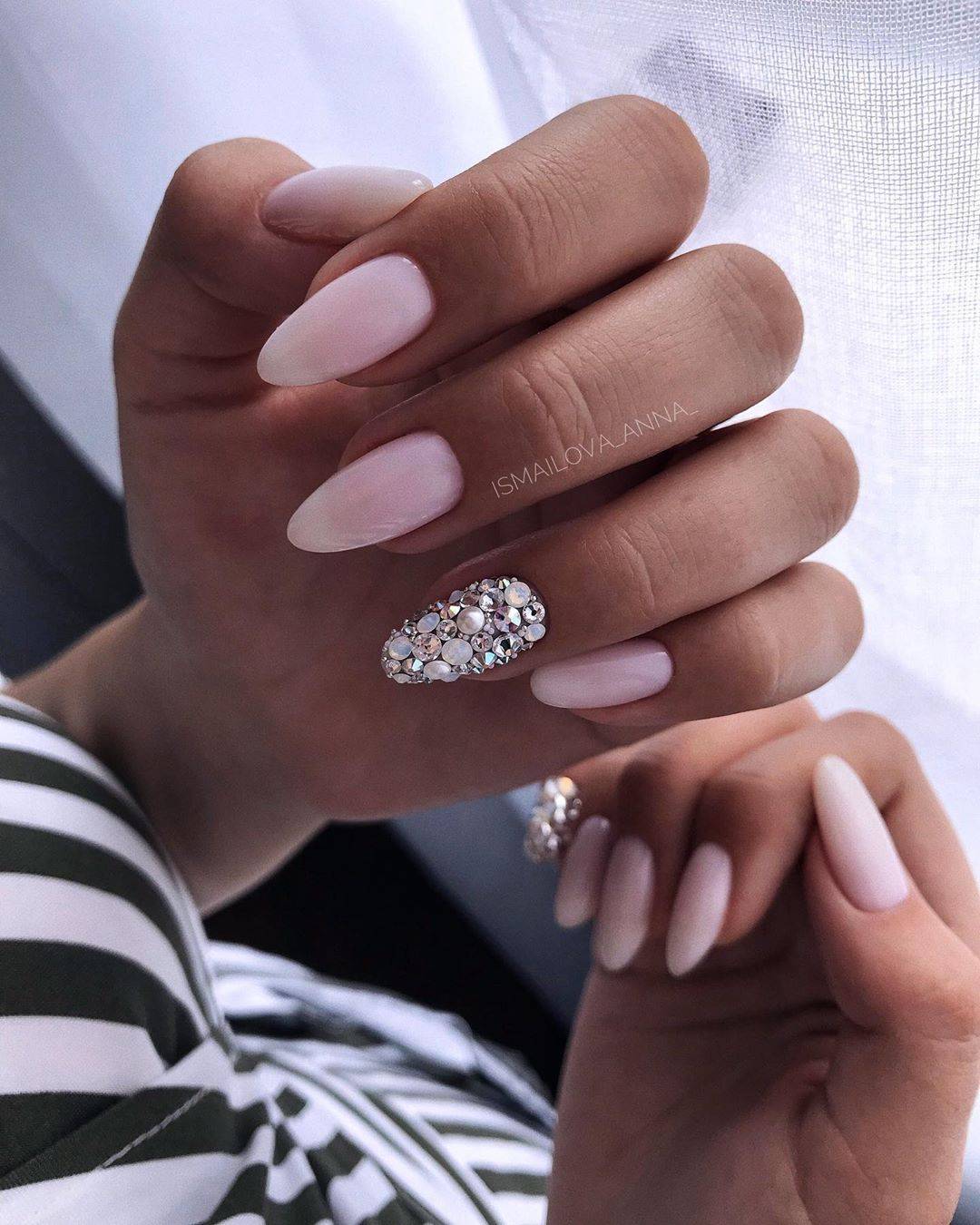 Настоящая женщина, как бы она ни была занята или озабочена чем-то, никогда не откажется от красивого аккуратного маникюра. Тенденции 2019 года диктуют, что пришло время мягких овальных и миндалевидных форм. Укороченная длина ногтя – это то, что модно в данном сезоне и одновременно удобно. Стразы, благодаря своему блеску, играют роль красивого дополнения. Разнообразие использования кристаллов – отличная возможность для мастера проявить свою фантазию, что наглядно видно на фото ниже.