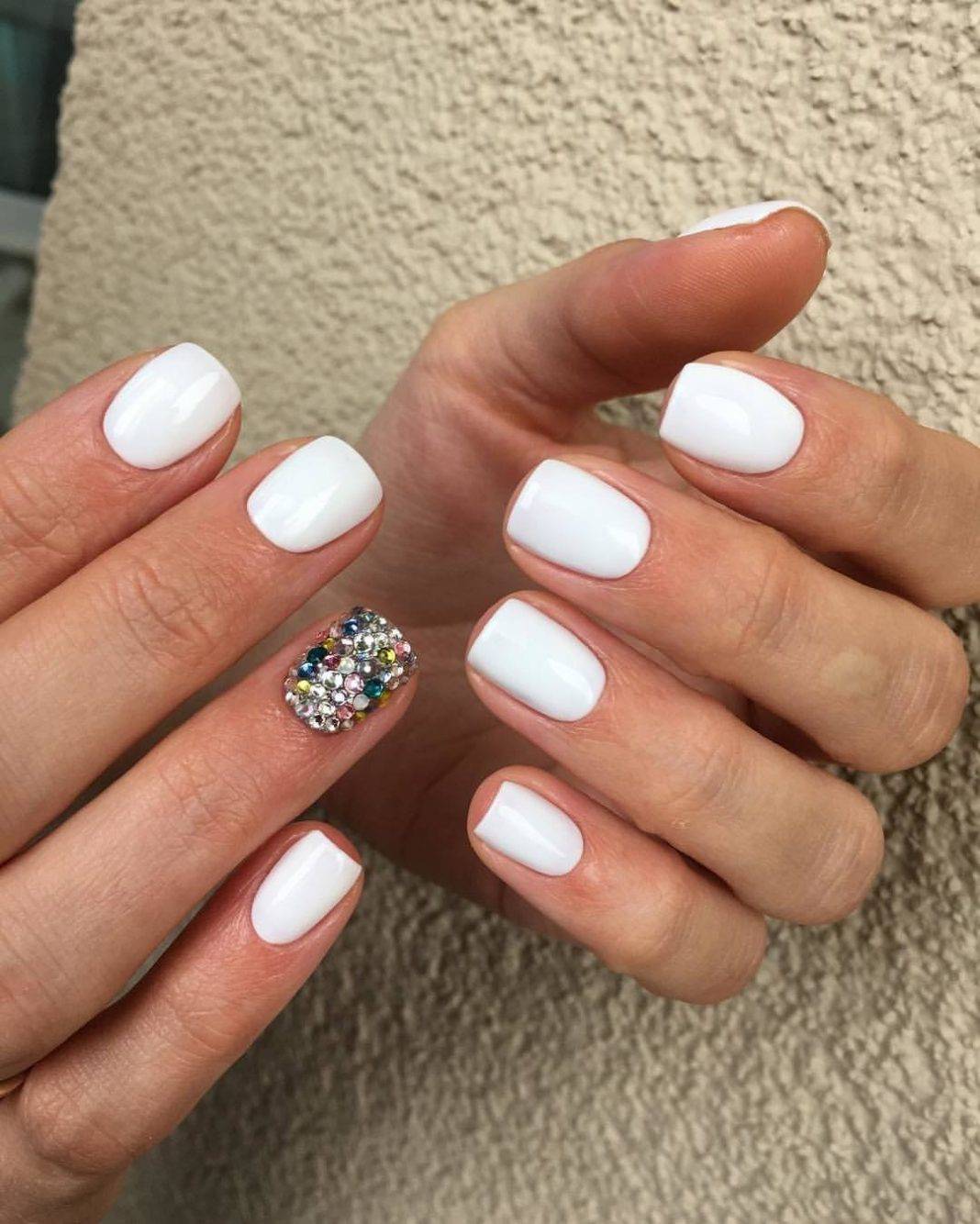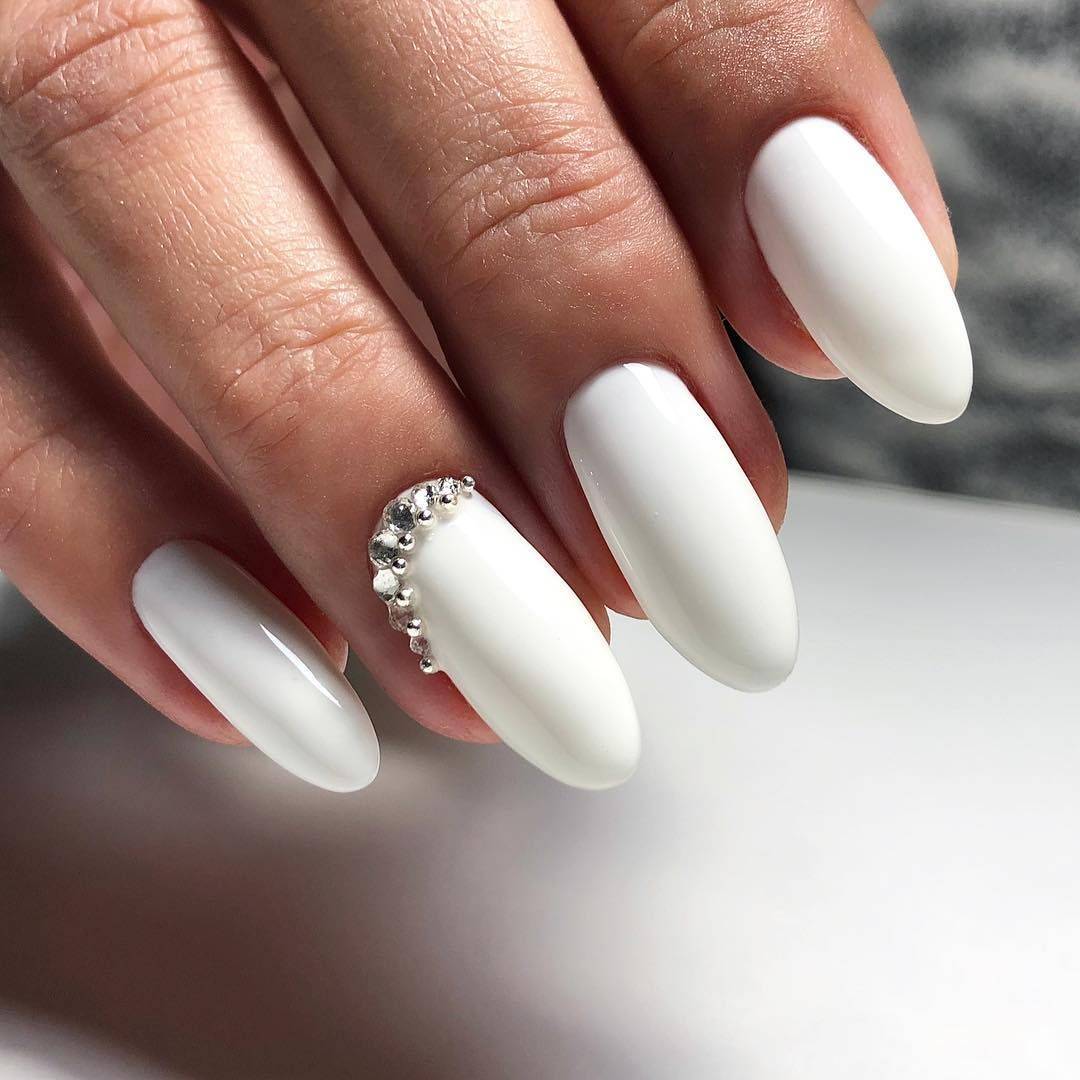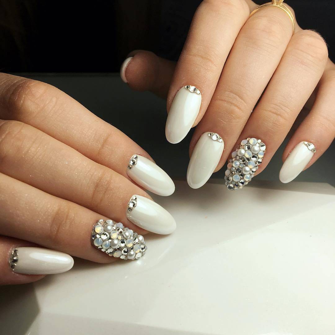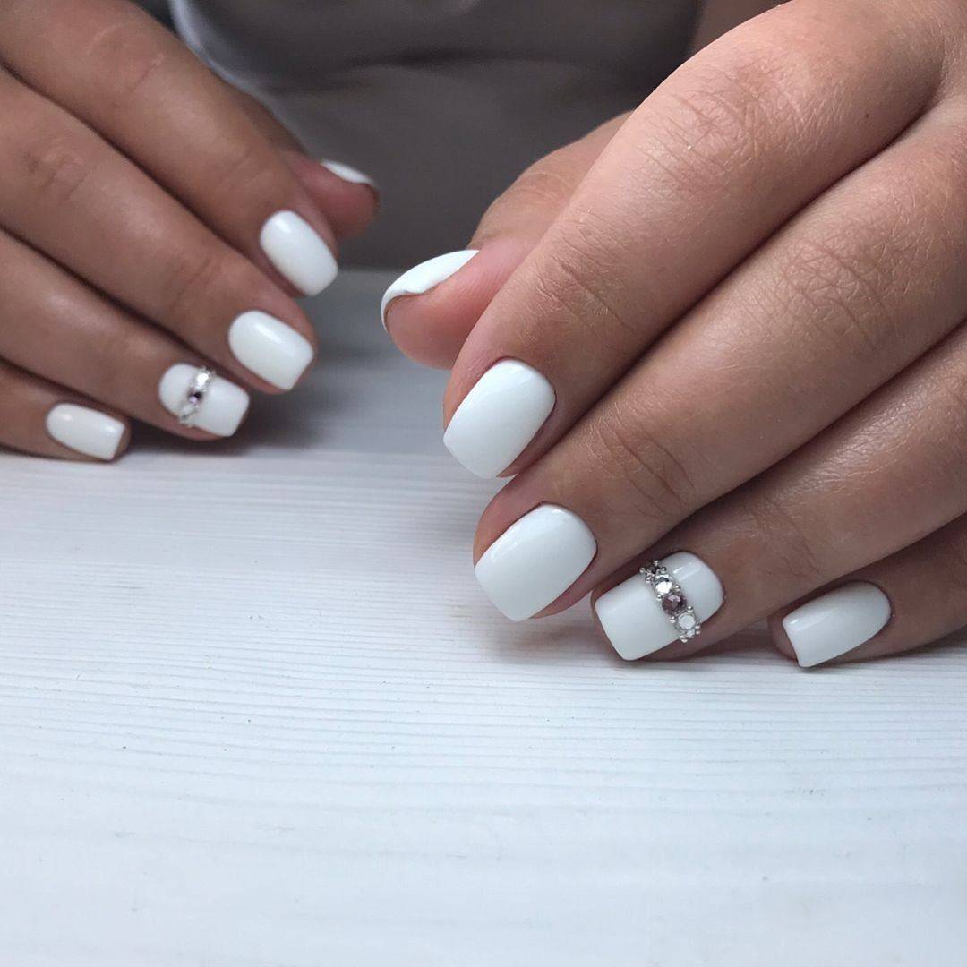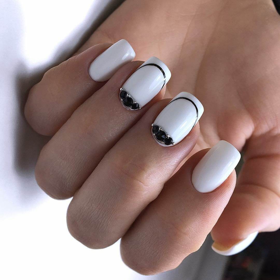 Такой декор, как стразы способен преобразить маникюр и изменить визуальное восприятие любого нейл-дизайна. Наличие всего одного-двух камешков позволит ногтям стать более выразительными и представит свою обладательницу в новом свете. На белом фоне стразы смотрятся особенно нежно и привлекательно. Хотите создать более женственный и романтический образ? Стразы и белый лак станут в этом случае вашей «золотой рыбкой».