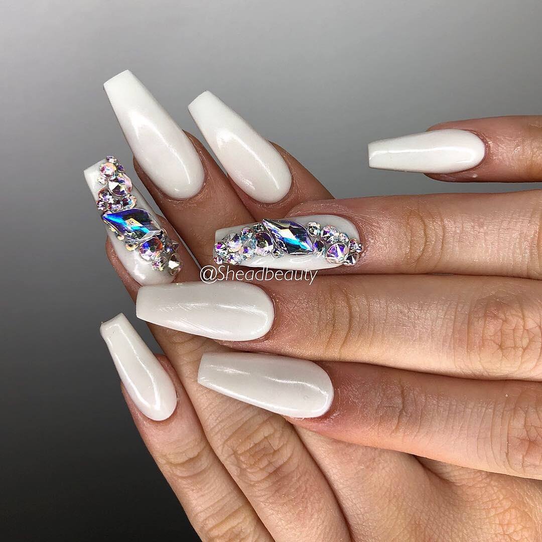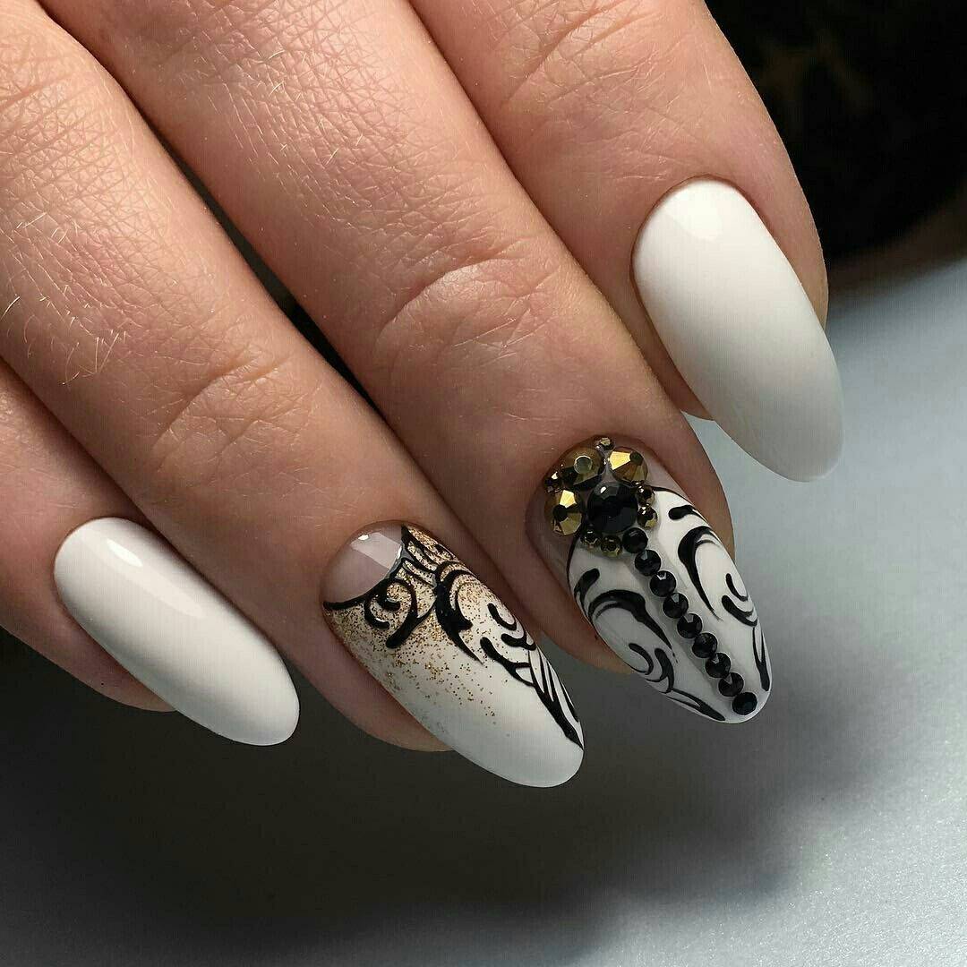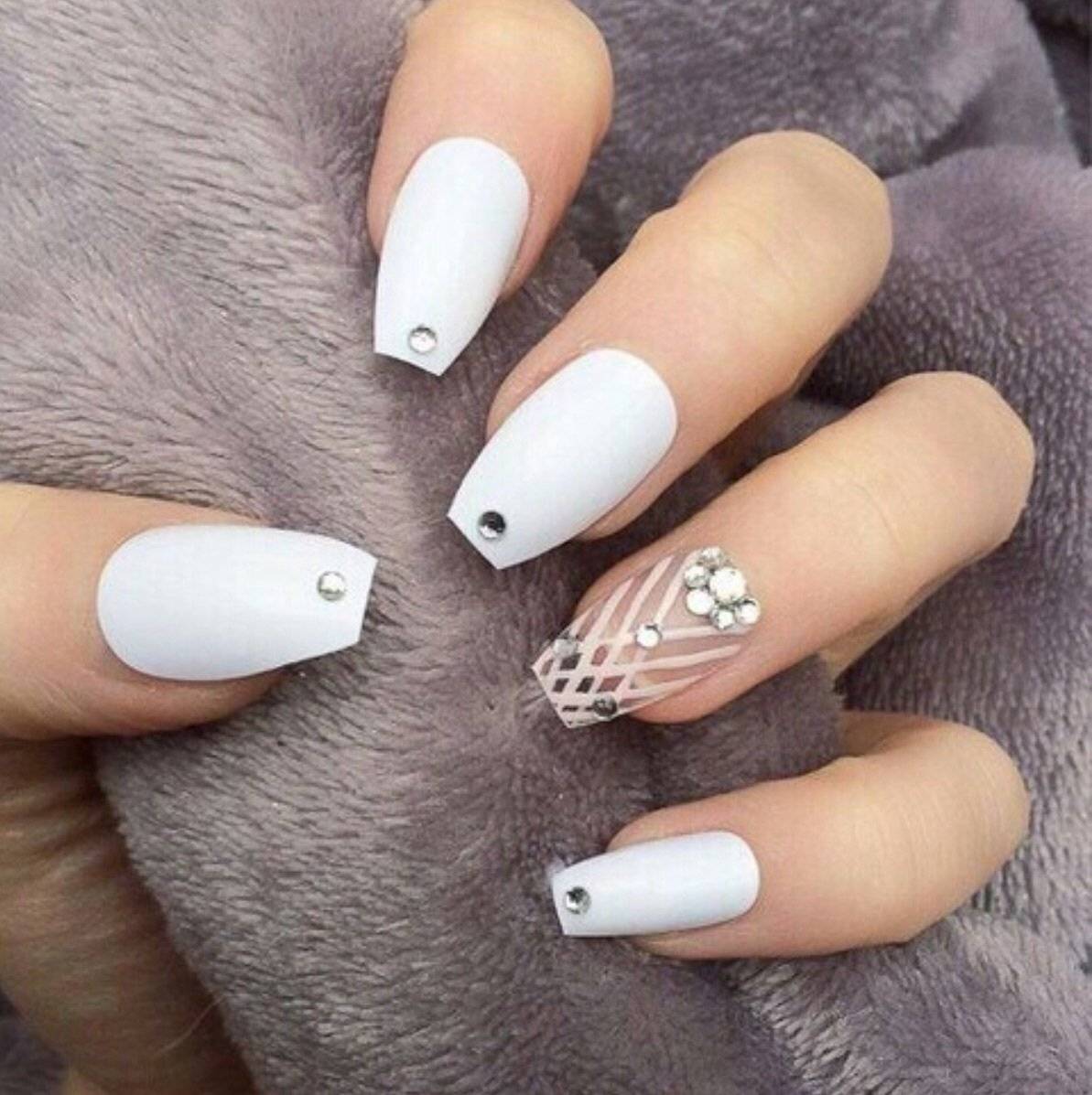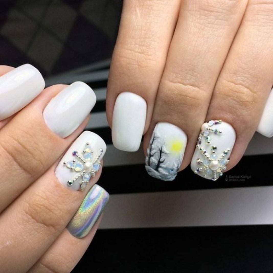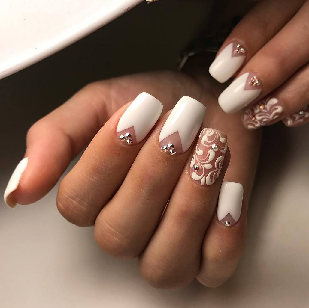 Такой декор, как стразы способен преобразить маникюр и изменить визуальное восприятие любого нейл-дизайна. Наличие всего одного-двух камешков позволит ногтям стать более выразительными и представит свою обладательницу в новом свете. На белом фоне стразы смотрятся особенно нежно и привлекательно. Хотите создать более женственный и романтический образ? Стразы и белый лак станут в этом случае вашей «золотой рыбкой».