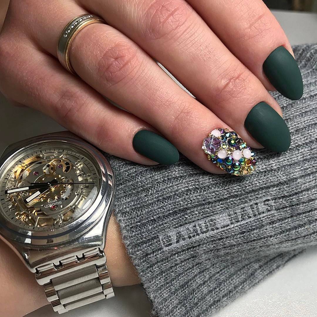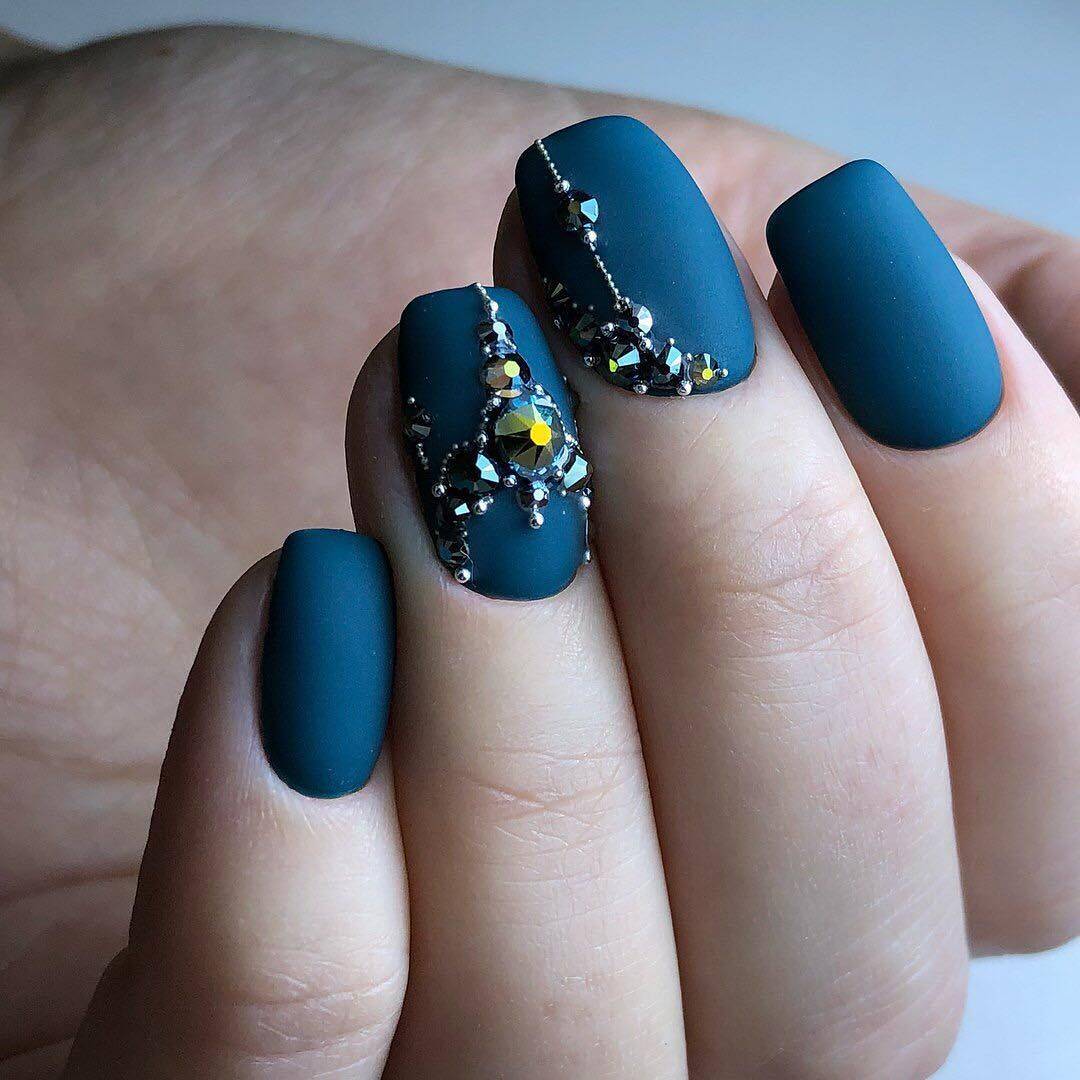 Темные оттенки великолепно смотрятся в матовом исполнении. Темный бархат на ногтях шикарно выглядит в повседневных и торжественных образах. Матовая текстура позволяет существенно смягчить темные оттенки, сделать их повседневными и стильными.