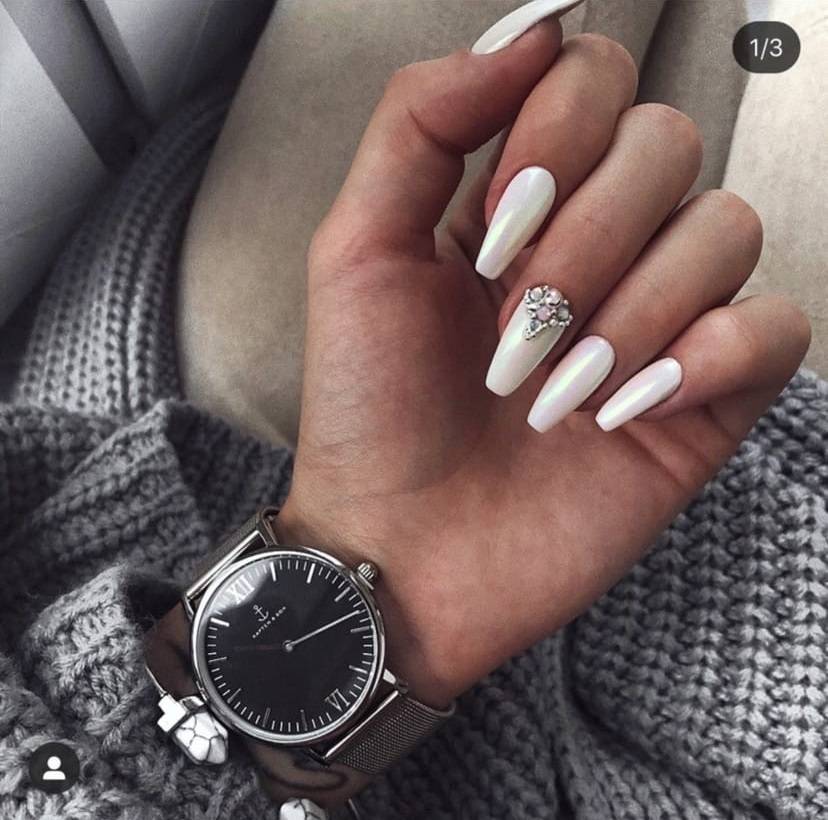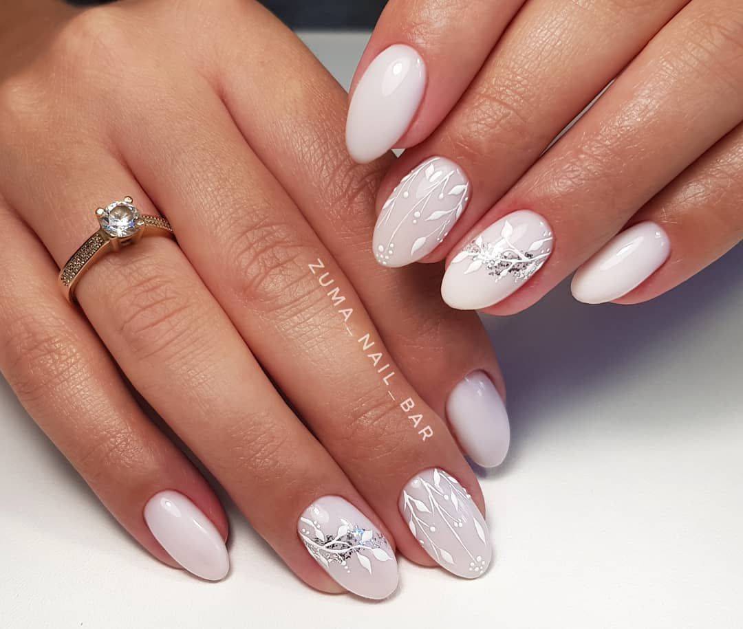 Если вы невеста, маникюр в белых тонах будет идеально подходить под шикарное белое платье.