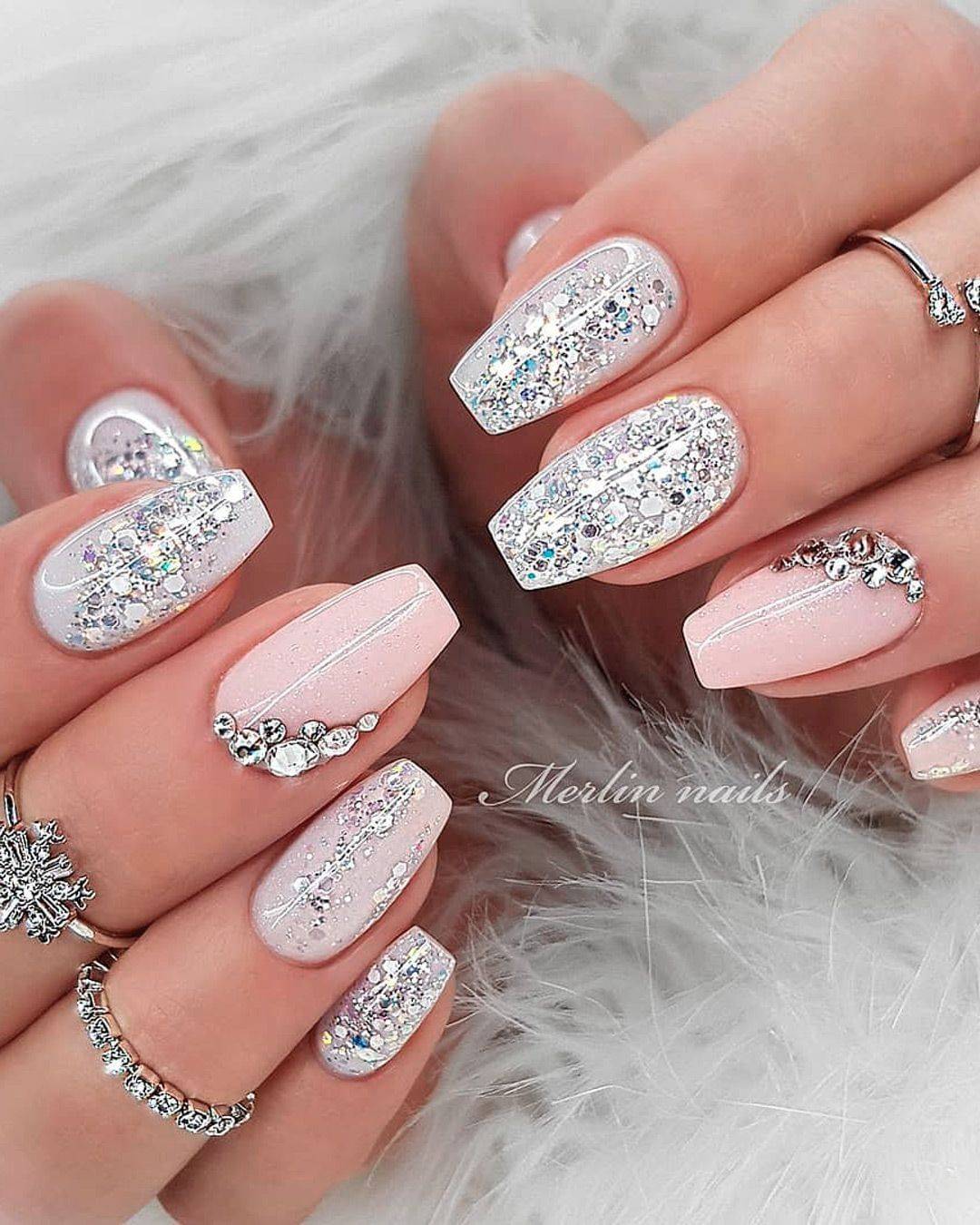 Блестки добавят в такой дизайн еще больше праздника и торжественности.