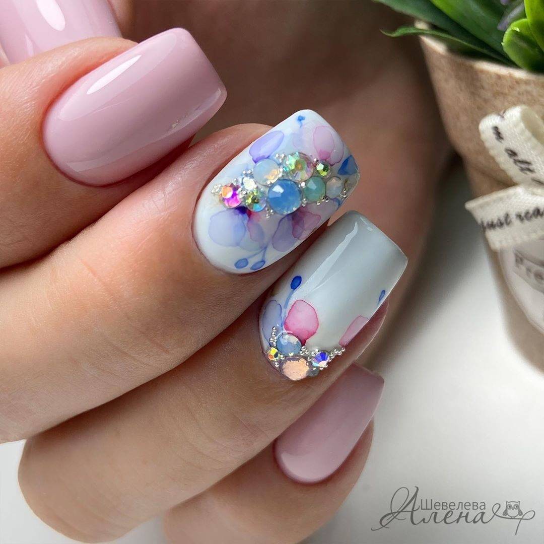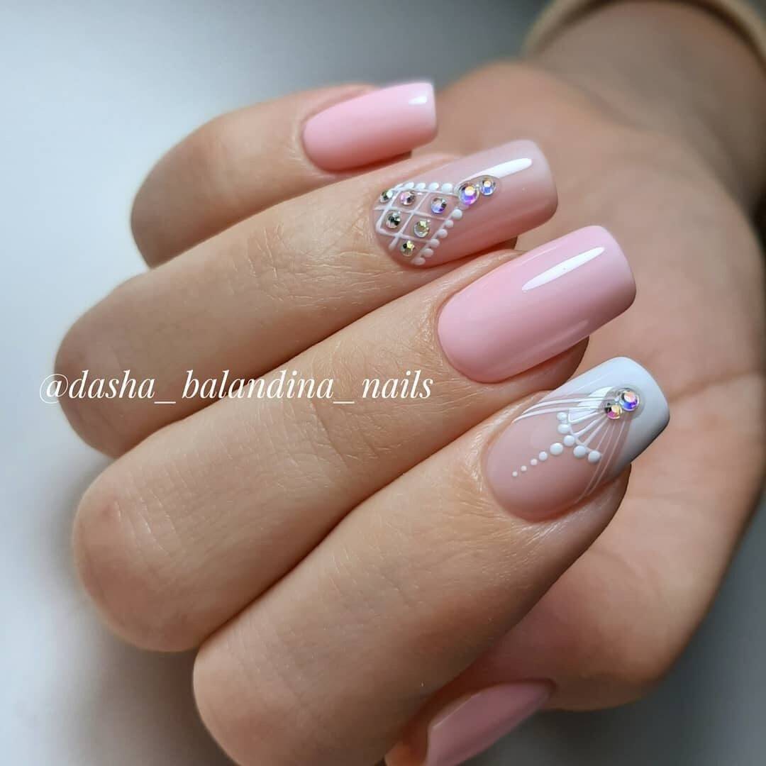 Конечно же, в каждом отдельном случае важно учитывать главные требования, а также степень насыщенности оформления. Поэтому мы подготовили подборку идей светлого маникюра со стразами и дизайном, которые будут актуальны в 2021 году
