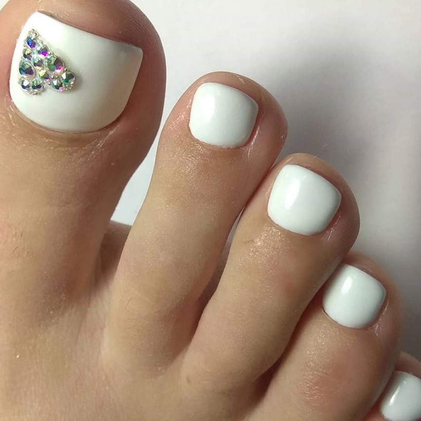 Довольно смелый и заметный педикюр — полностью белоснежный