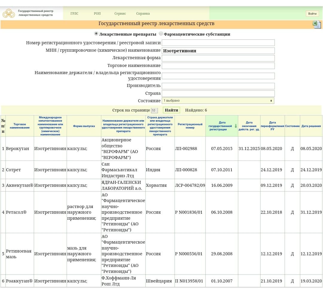 На сегодняшний день седи шести зарегистрированных в России препаратов Изотретиноина Ретиноевая мазь является единственной лекарственной формой в виде мази.