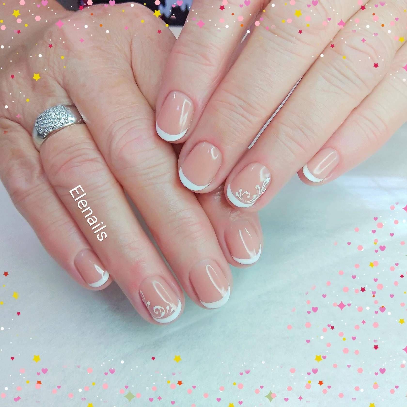 Классический френч предоставляет нам отличную стартовую базу для выполнения различных рисунков. Современные тенденции давно приучили нас к новинкам и изюминкам в нейл-арте, и простой классический френч кажется слегка скучноватым и простым. Френч с рисунком — это неисчерпаемая тема для оформления ногтей. Как утверждают модные критики, самыми актуальными в этом сезоне будут узоры на геометрические темы и флористические мотивы, абстрактные узоры и любые изображения, которые передают воздушность и нежность в своём дизайне. К таким вариантам можно отнести ажурные рисунки, вензеля и элементы кружева. Только не стоит забывать, что рисунки не должны смотреться одним большим пятном на ваших руках. Дизайн лучше расположить на нескольких пальцах. Если вы выбираете рисунки на всех ноготках, позаботьтесь о ненавязчивом исполнении