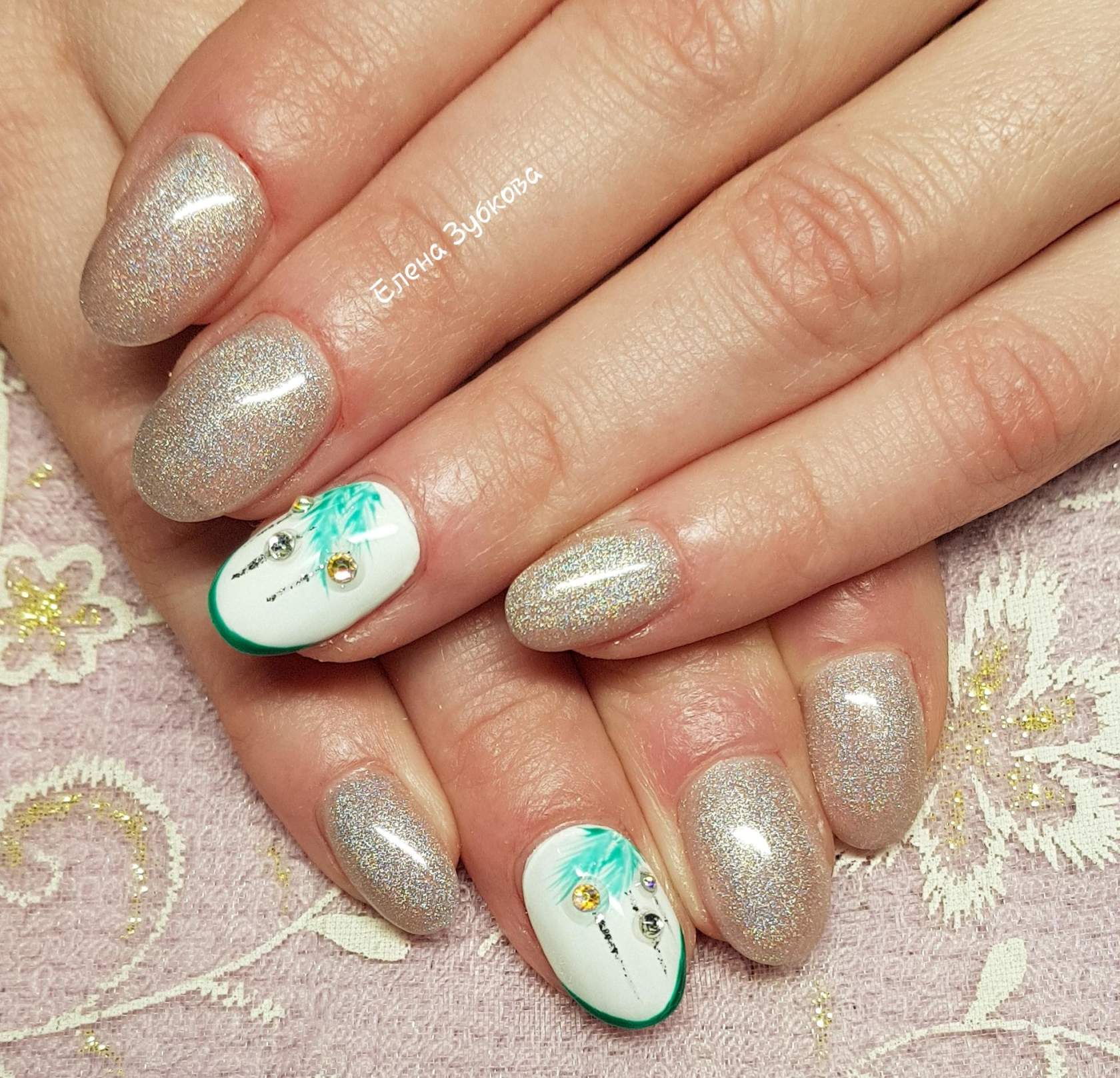 - В дизайне можно использовать глиттер, кристаллические камни, фольгу;