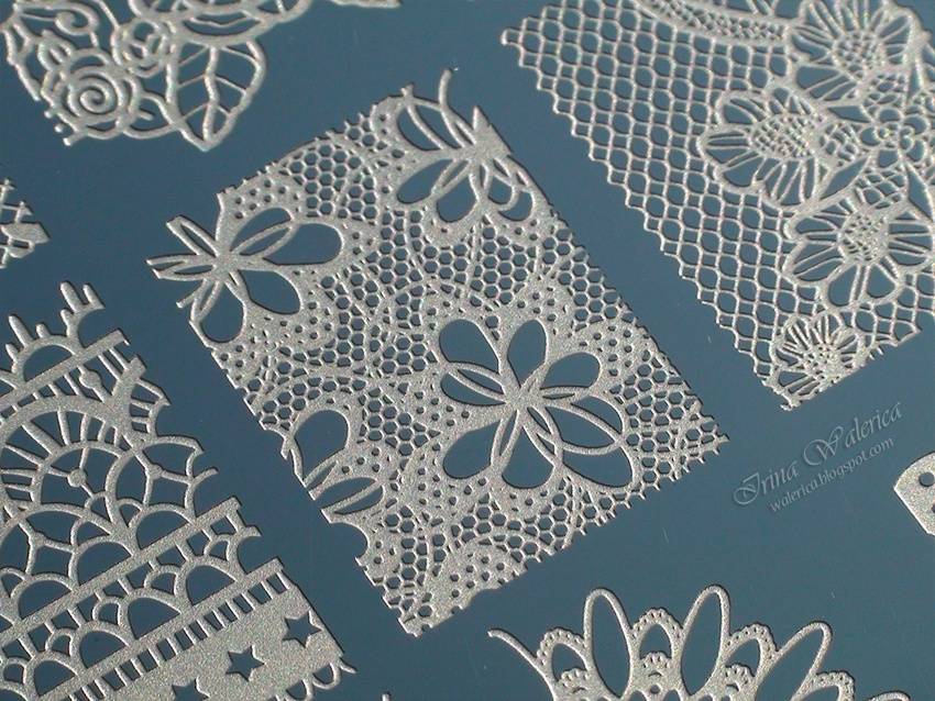 Штамп осторожно прислоняется к изображению, в это время кружево отпечатывается.