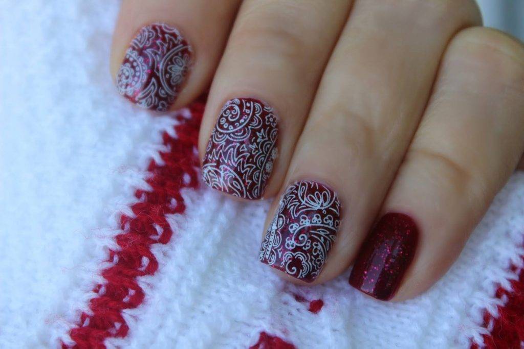 Как и в вечернем, так и в свадебном нейл-дизайне популярным стал красивый маникюр с кружевом, выполненный в технике стемпинг, предусматривающей нанесение ажурных узоров специальными штампами.