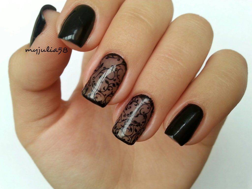 Хороший выбор для ноготков любой длины. Ведь мы девушки почему-то ошибочно считаем, что ажур будет смотреться красиво только на длинных ноготках. Но это не так! Ажур прекрасно подходит к коротким ноготкам, если выполнить его в черном или белом тоне. Кстати, черное макраме считается трендом текущего года.