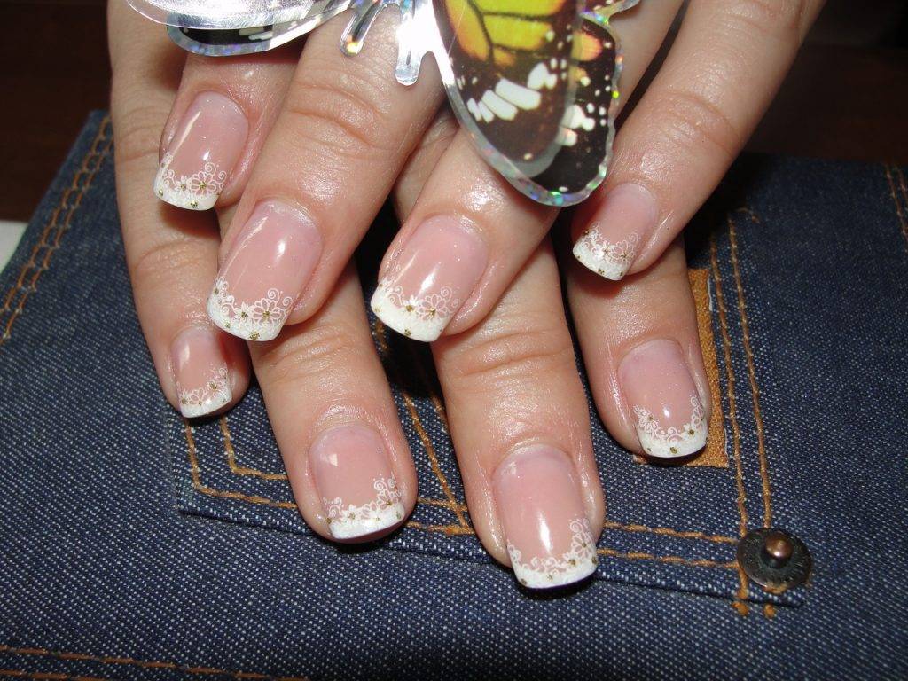 Молодые дамы предпочитают на свадьбу делать дизайн именно с кружевом, сочетая его при этом с французским маникюром. Это придает некую изюминку и добавляет нежности невесте. Руки при этом имеют очень ухоженный и изящный вид. Кружево можно наносить как на глянцевую, так и на матовую поверхность.