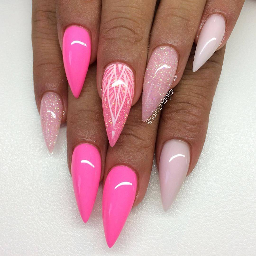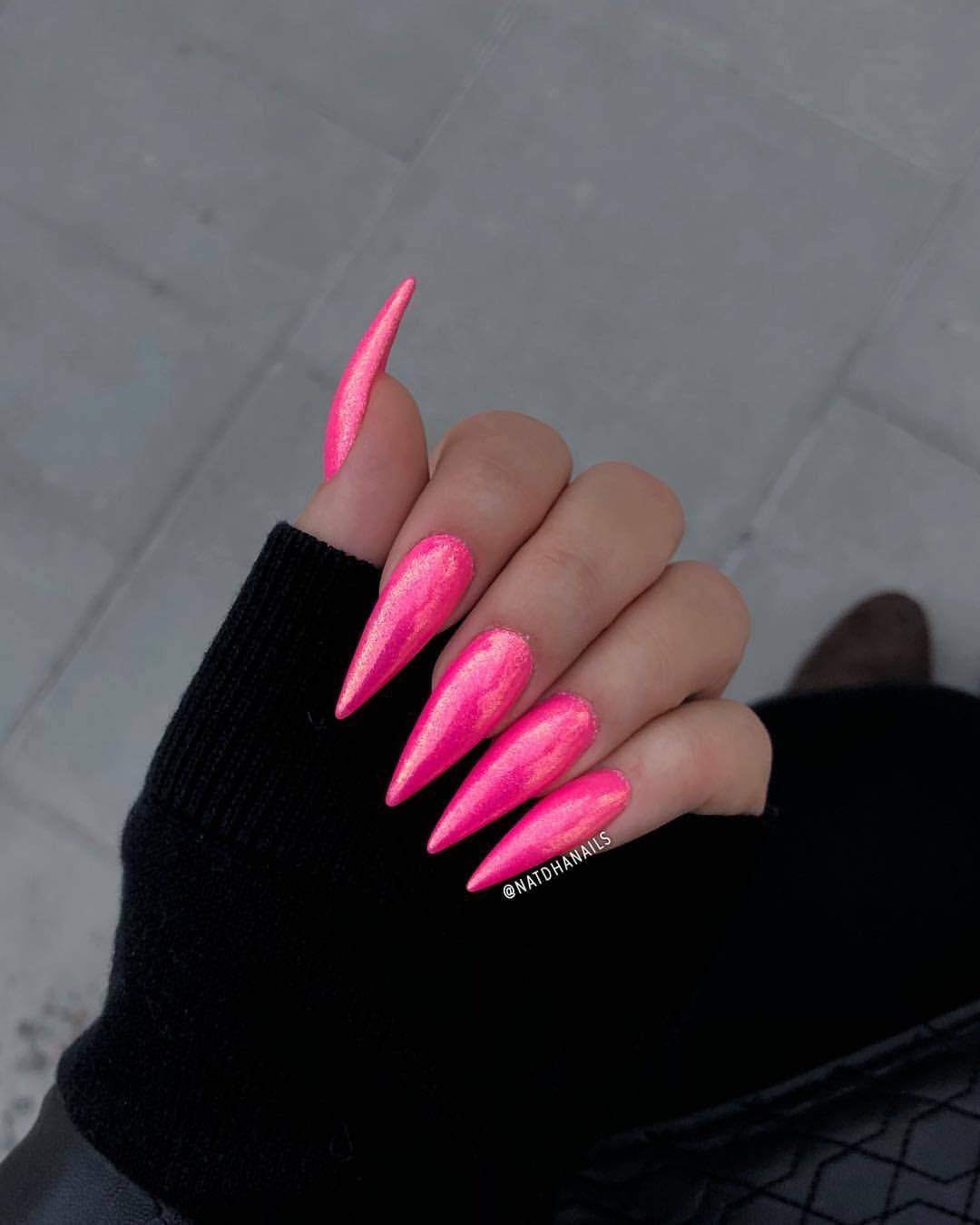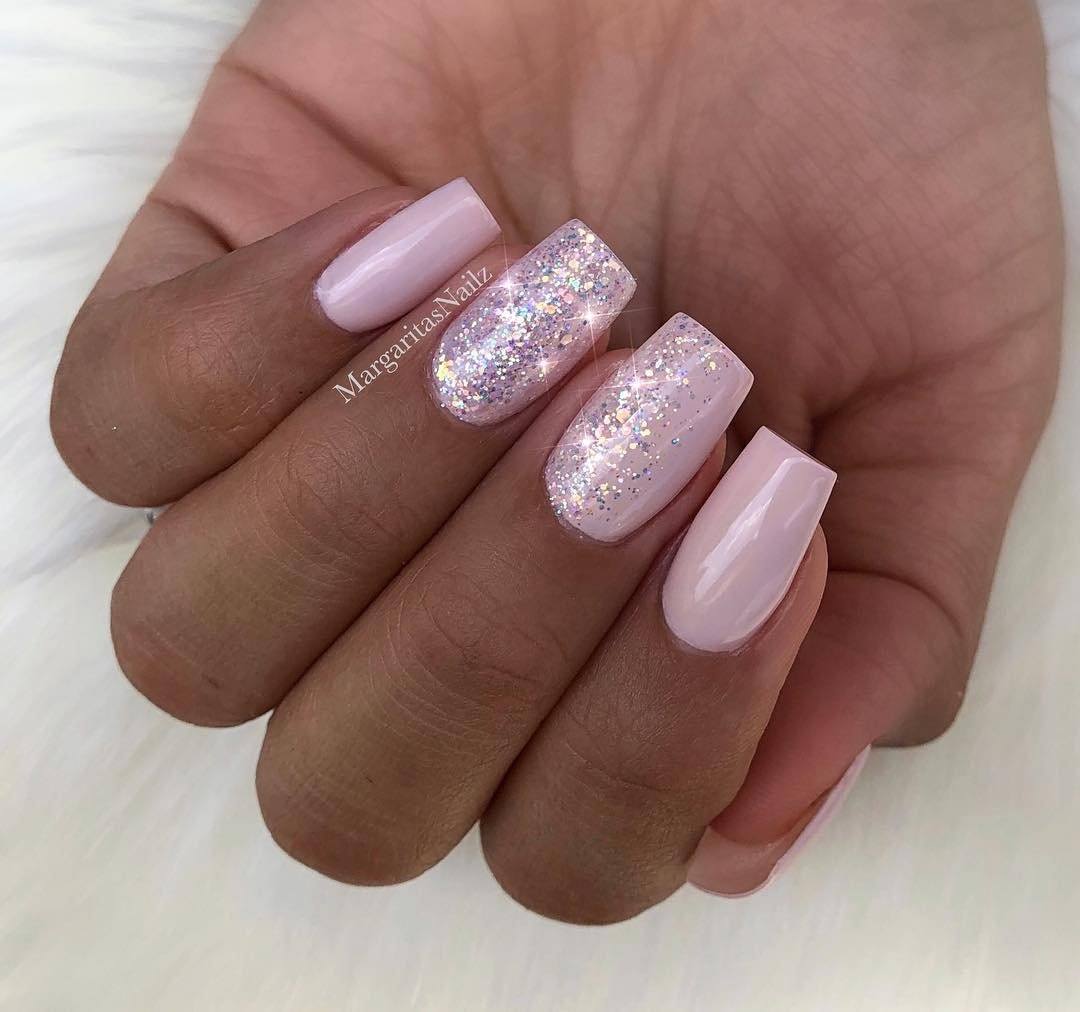 Розовая палитра богата разными оттенками, которые чудесно сочетаются с блёстками и шикарно смотрятся как на коротких, так и на длинных ноготках. Для создания модного розового маникюра изначально следует определиться с выбором основного покрытия, и, по мнению нейл-специалистов, светлокожим барышням лучше подходят светлые оттенки, а красоту смуглой кожи и тёмных волос следует подчеркнуть более яркими лаками. Для сохранения гармонии во всём образе, не стоит дублировать насыщенный розовый на ноготках в деталях одежды или аксессуарах.