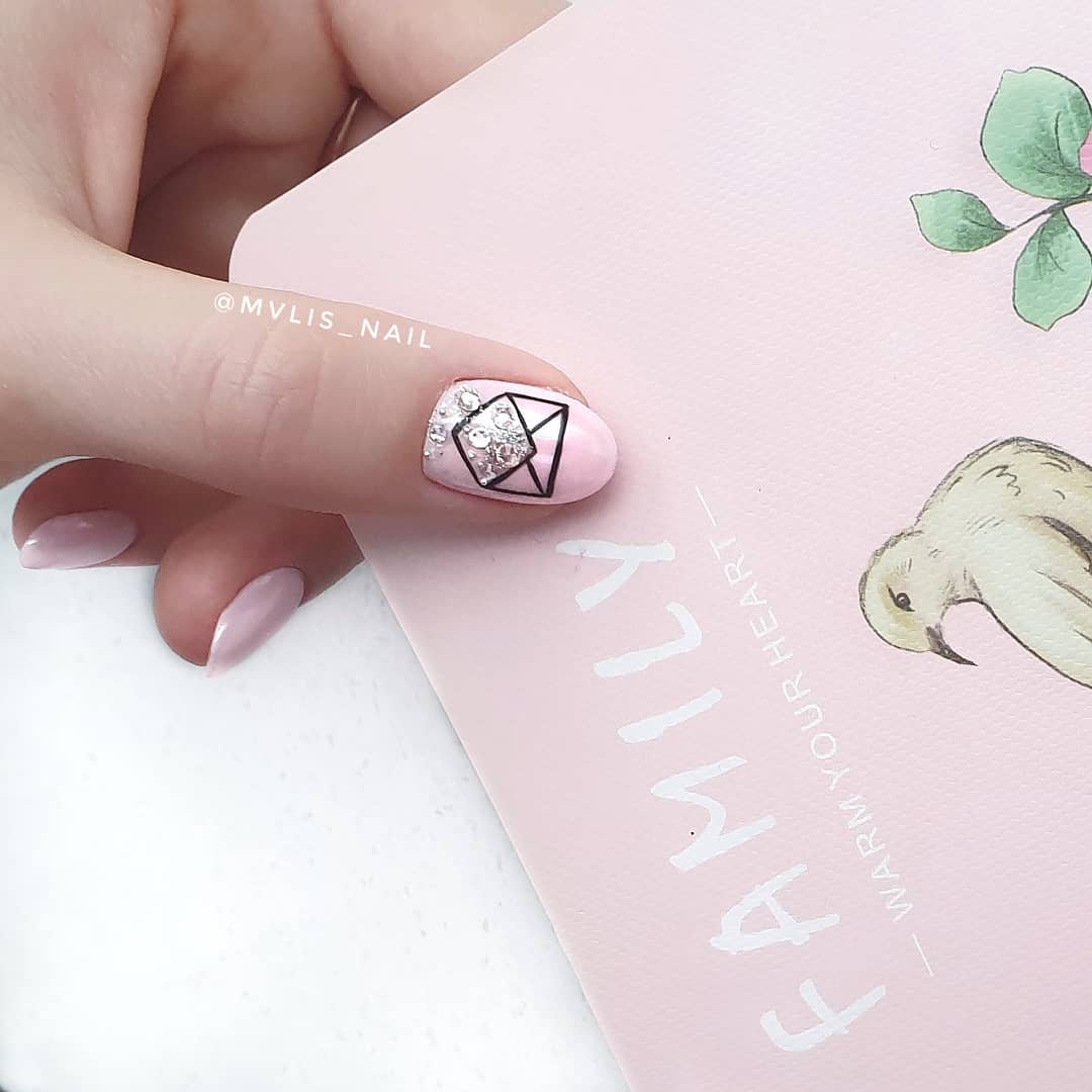 В 2020 году стоит присмотреться к геометрическому дизайну. Тонкие линии, фигуры и точки – все это можно использовать для создания бесчисленного количества рисунков на любой вкус. К тому же, многое зависит от техники нанесения. В домашних условиях использовать кисти не всегда удобно. Выбирайте стемпинг для симметричности. С помощью блесток можно подчеркнуть одну-две линии, что сделает дизайн чуть более ярким.