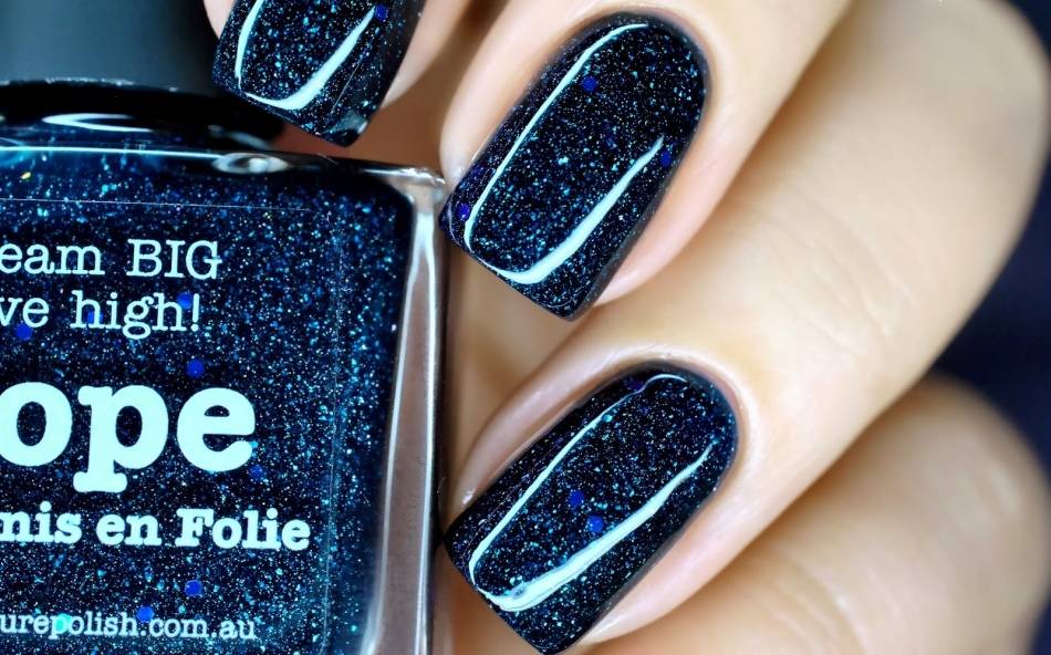 Как уже говорилось выше, блестки преображают даже простое однотонное покрытие. Но это вовсе не значит, что стоит отказываться от оформления с различными рисунками. Такое сочетание всегда смотрится стильно и дополнит любой образ.