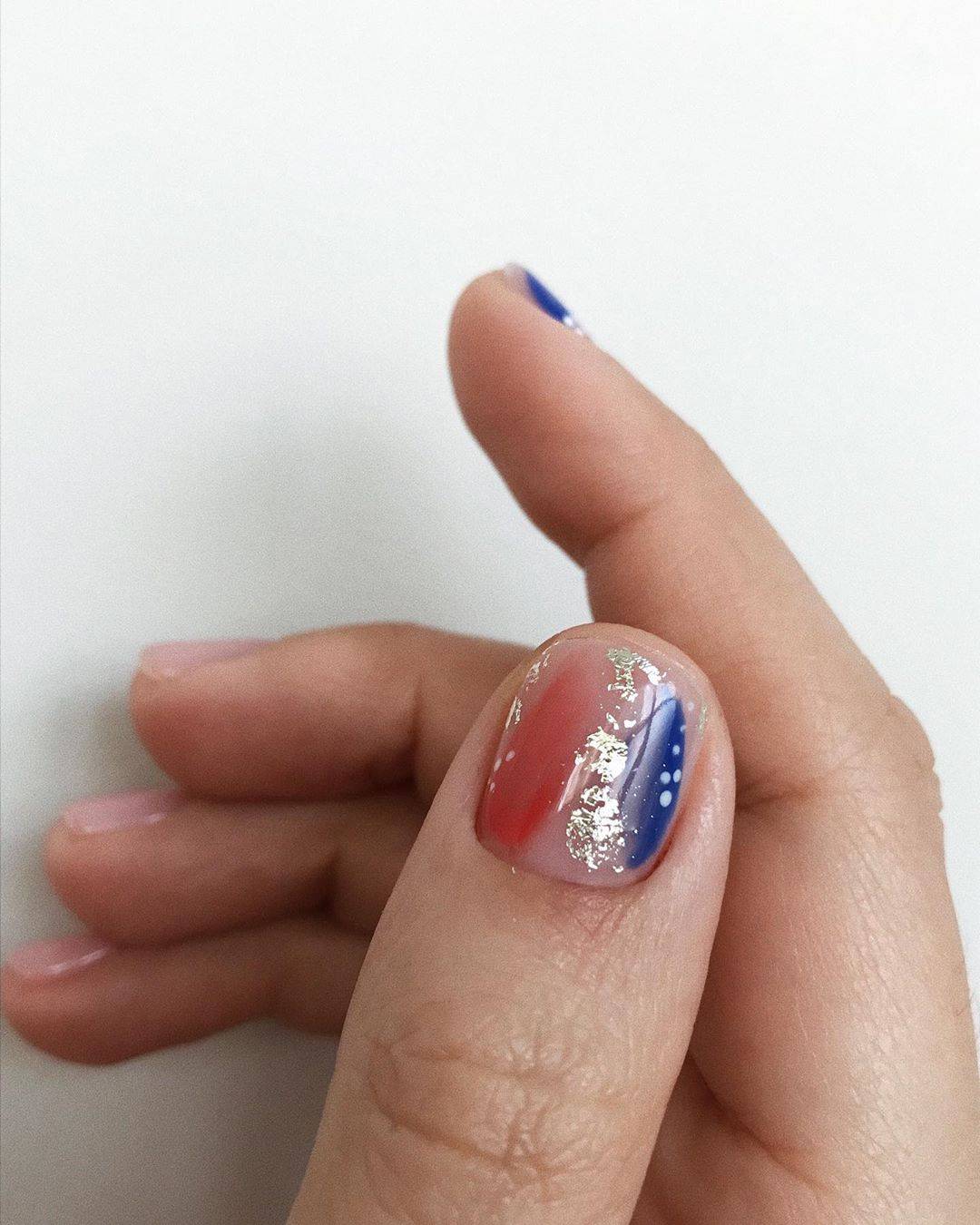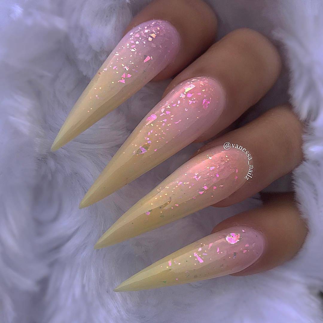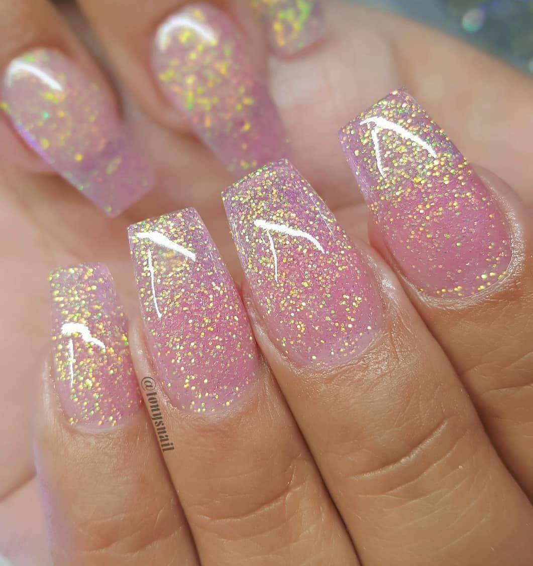 - Блестки разных цветов прекрасно сочетаются между собой, поэтому здесь открыты просторы вашей фантазии. Можете к примеру нарисовать градиент на ногтях.