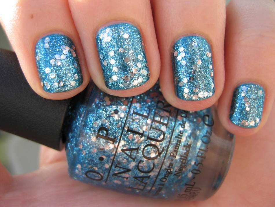 Синий и голубые ногти прекрасно сочетаются с блестками