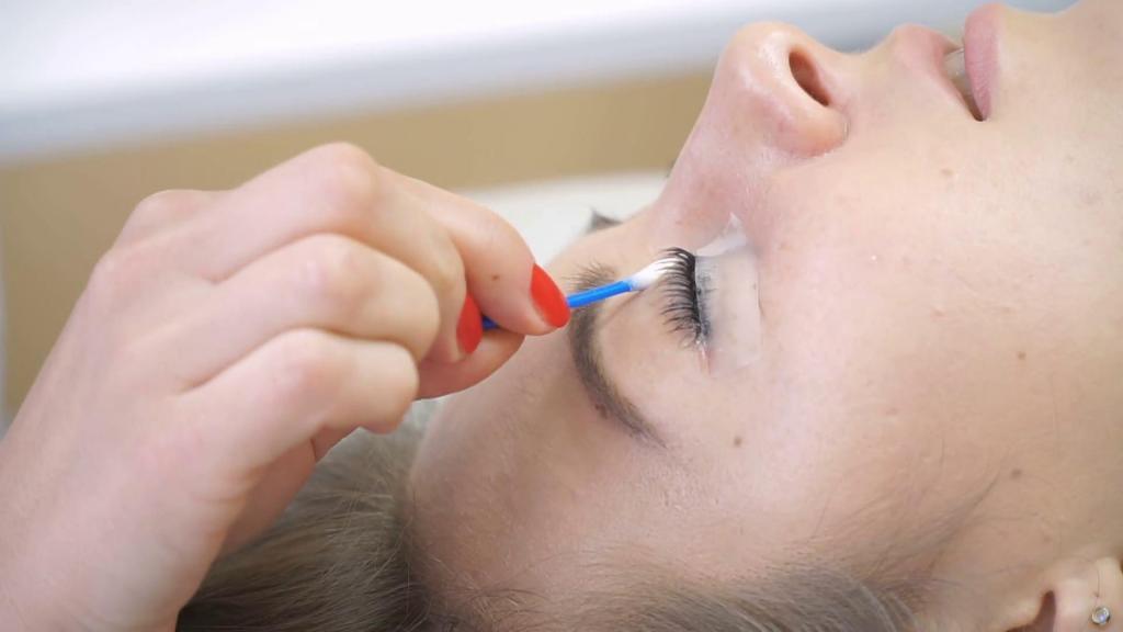 - Подготовительный этап. На этом этапе осуществляется обезжиривание волосков специальными препаратами, на веки наносится крем для защиты от попадания на них тех или иных составов. Между верхними и нижними ресницами устанавливается валик, предотвращающий их склеивание.