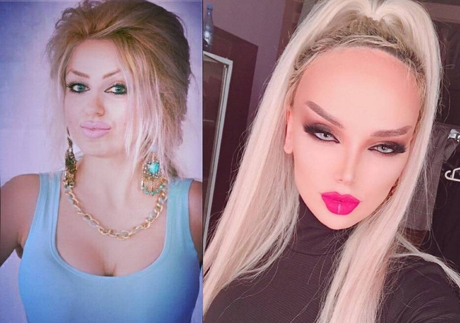 Преображение армянская Барби проводила постепенно. На первом этапе она сделала объемную контурную пластику филлерами и удалила комки Биша, результат – другой овал лица, аристократичные скулы, впалые щуки и пухлые губы. Маленького и вздернутого кукольного носика модель добилась с помощью ринопластики.