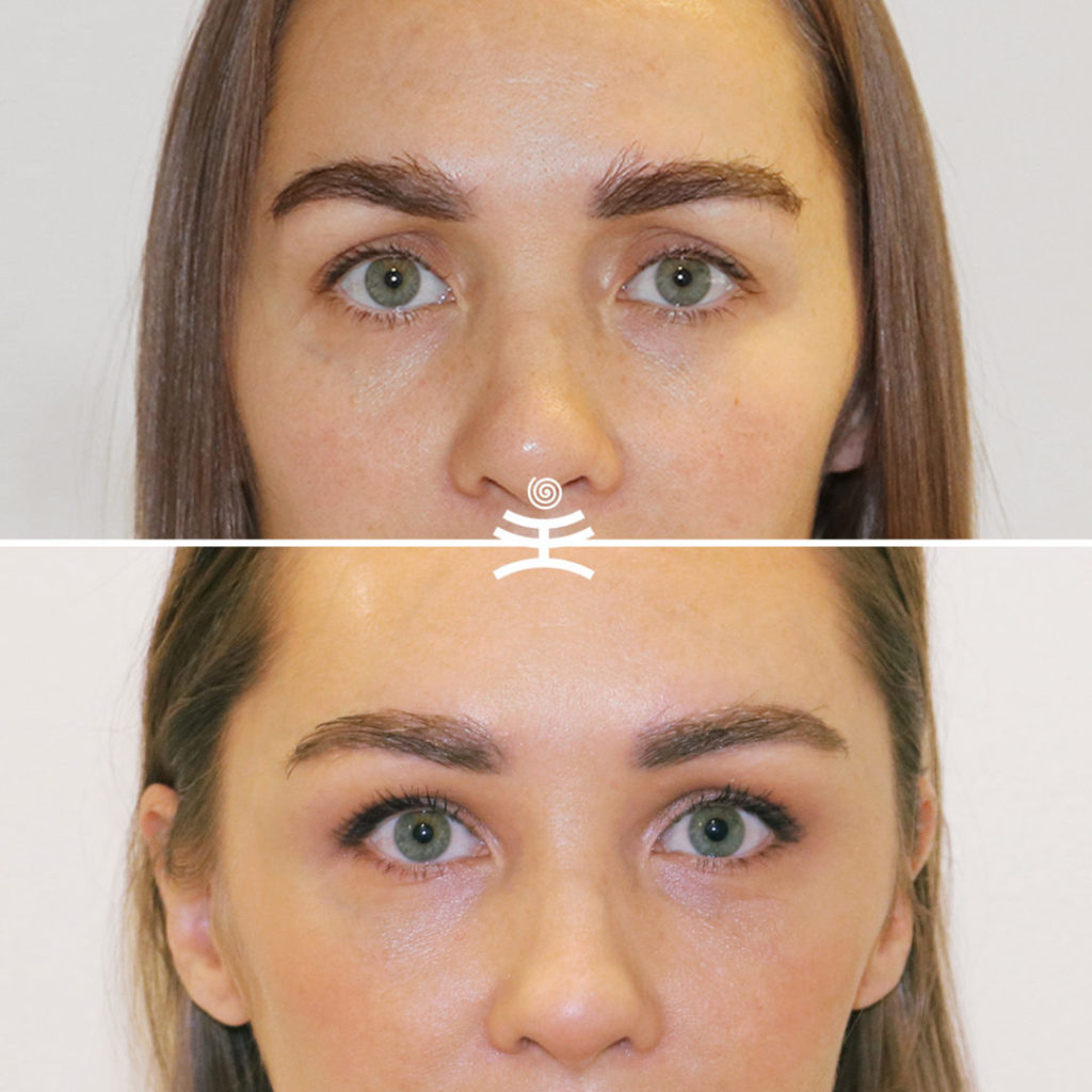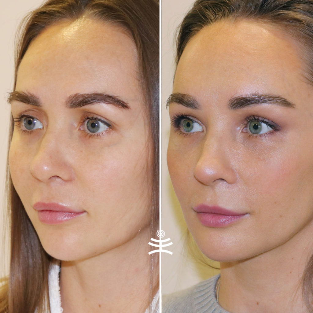 Эффективным способом коррекции носослезной борозды без инъекций является микроигольчатый RF-лифтинг, или Morpheus 8. Процедура основана на глубоком контролируемом прогреве тканей радиочастотным излучением. При Morpheus 8 используется игольчатый аппликатор, благодаря чему ткани прогреваются глубже без повреждения поверхности кожи. Прогрев глубоких слоев кожи стимулирует запуск в ней процессов ремоделирования – жировая ткань коагулируется, волокна соединительной ткани подтягиваются, в результате чего происходит сокращение кожного лоскута. Как следствие, носослезная борозда сглаживается, кожа в ее области становится более упругой, плотной, исчезает гиперпигментация.