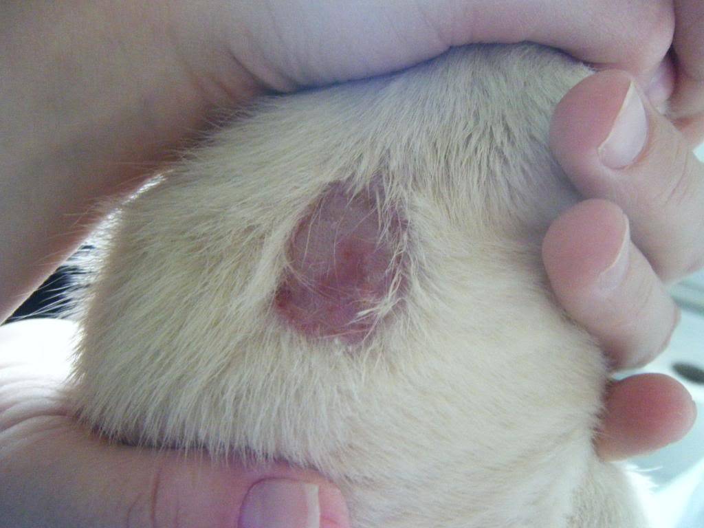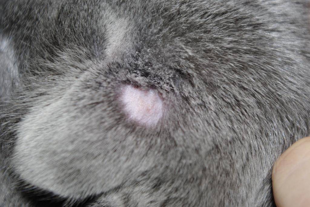 - на участках кожи под ними полностью отсутствует шерсть, после выздоровления она уже не восстановится;