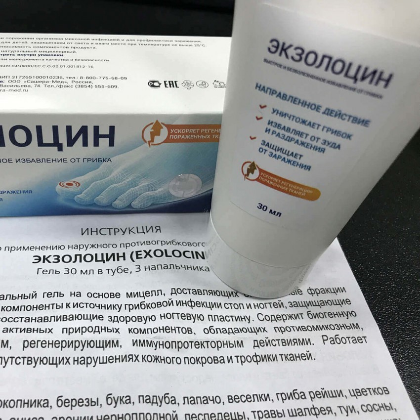 Препарат на основе нафтифина. Это вещество проявляет противогрибковую активность относительно широко спектра грибков. В преимуществе случаев – полностью уничтожает инфекции (оказывает фунгицидное действие). Эффективен против трихофитии, микроспории, эпидермофитии, кандидоза. Устраняет дрожжеподобные и плесневые грибки. Активный компонент обладает и антибактериальными свойствами – уничтожает стафилококков и стрептококков, способных вызывать осложнения микоза стоп (нарывы, абсцессы). Преимущество Экзодерила – выраженный противовоспалительный эффект. Препарат снимает зуд, стянутость и другой дискомфорт уже после 1-2 нанесений. Кремообразную форму можно применять при грибке кожи и ногтей. Крем хорошо распределяется, качественно увлажняет дерму, быстро снимает шелушение.