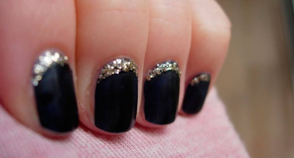 Нежный лунный маникюр с блестками или обратный френч — решение для маникюра на каждый день.