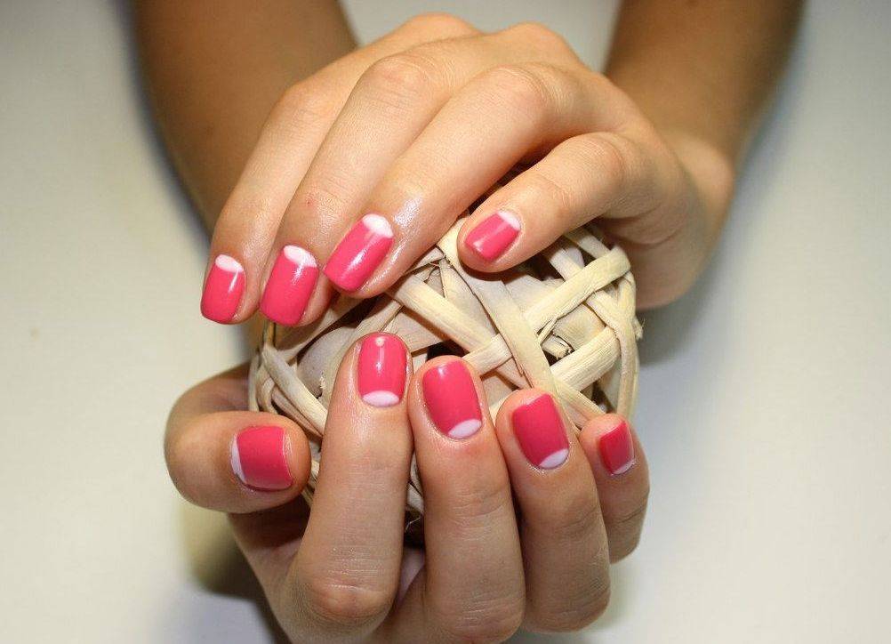 Важно использование определенной цветовой гаммы. Для покрытия основания ногтя используется светлый оттенок, а для всей оставшейся части — контрастный