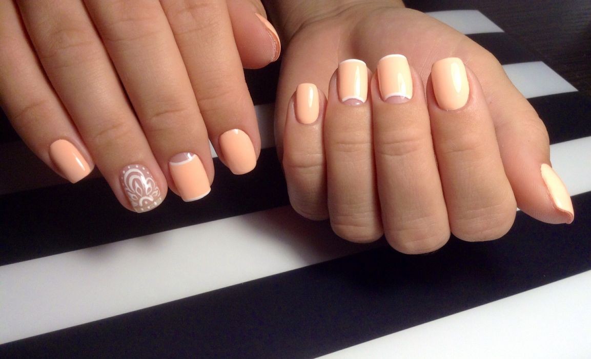 А теперь посмотрим, что же можно изобразить на ногтях на основе бежевого гель-лака.