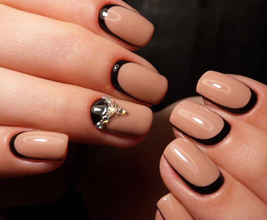 Черный маникюр уже несколько лет не выходит из моды. Он актуален всегда. Черный маникюр может быть выполнен в самых разных стилях: классика, готика, гранж и другие. Черный лунный маникюр очень популярен среди молодых девушек. На черный гель-лак лучше всего ложиться втирка, с помощью которой можно создать красивое и модное зеркальное покрытие. Черный сочетается с любыми оттенками лаков и декором для ногтей, будь то стразы, фольга, мозаика и так далее, поэтому на его основе можно придумать множество идей дизайна.