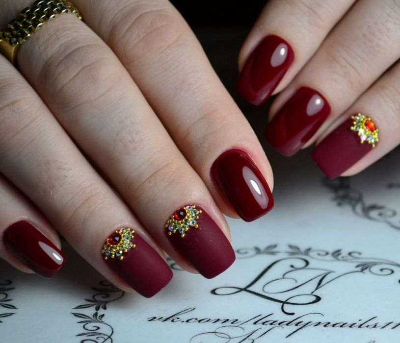 Как правило, за основной тон выбирают насыщенные, густые, глубокие цвета. Приветствуется сочетание матовых и металлических лаков.