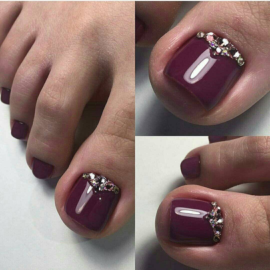 - Педикюр с лунками. В нижней части ноготка проводится дуга, а затем, лунка закрашивается одним цветом, другая часть закрашивается другим цветом или не закрашивается вовсе. Можно подкрасить кончики таким же лаком, что и лунку.