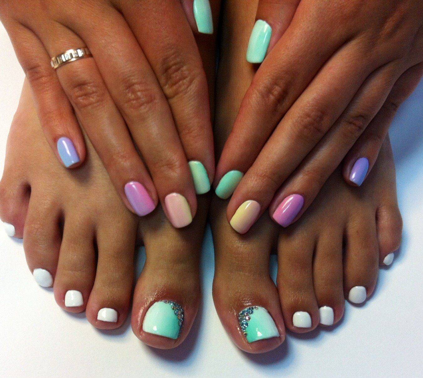 Последний вариант отлично подойдет для офисных будней и деловых встреч. Интересно смотрится цветной маникюр, создавая на ноготках весеннее настроение.
