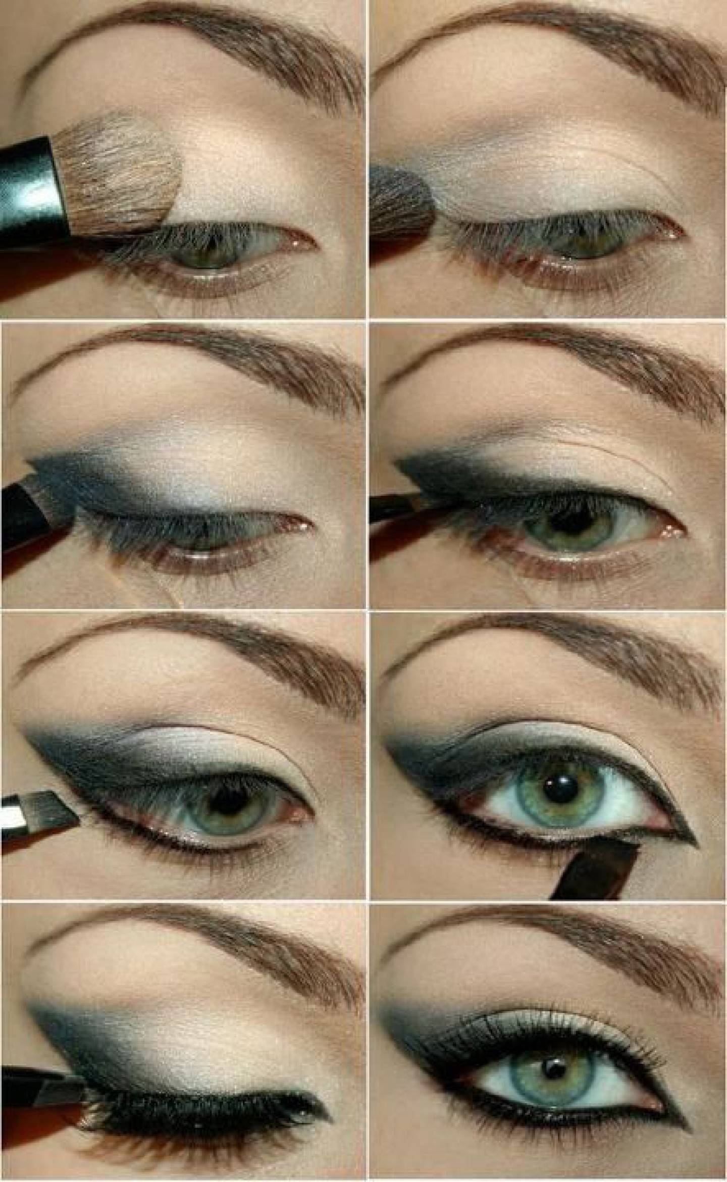 Решив сделать макияж смоки айс для голубых глаз, сперва следует провести выравнивание цвета кожи. Для этого стоит использовать корректор. Также, перед тем, как создавать макияж смоки айс для голубоглазых рекомендуется немного припудрить веки. После этого пошагово выполняется такая схема: