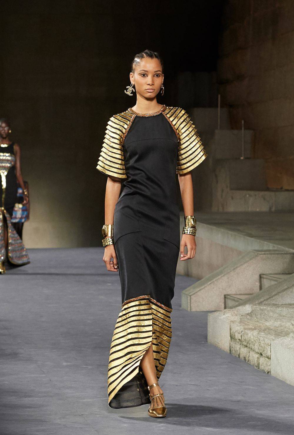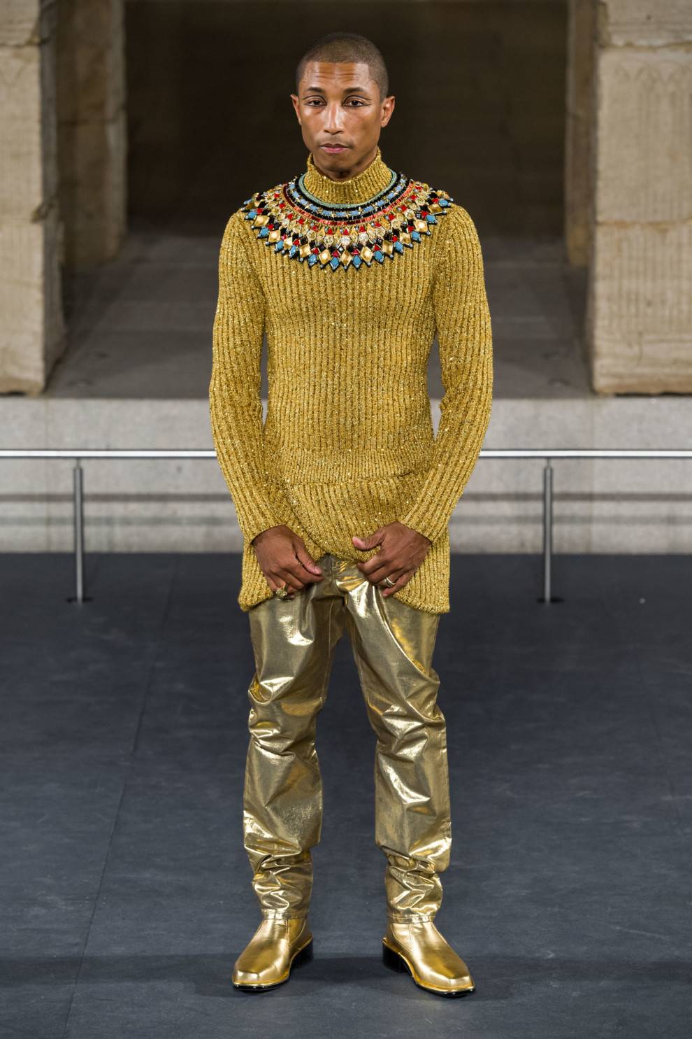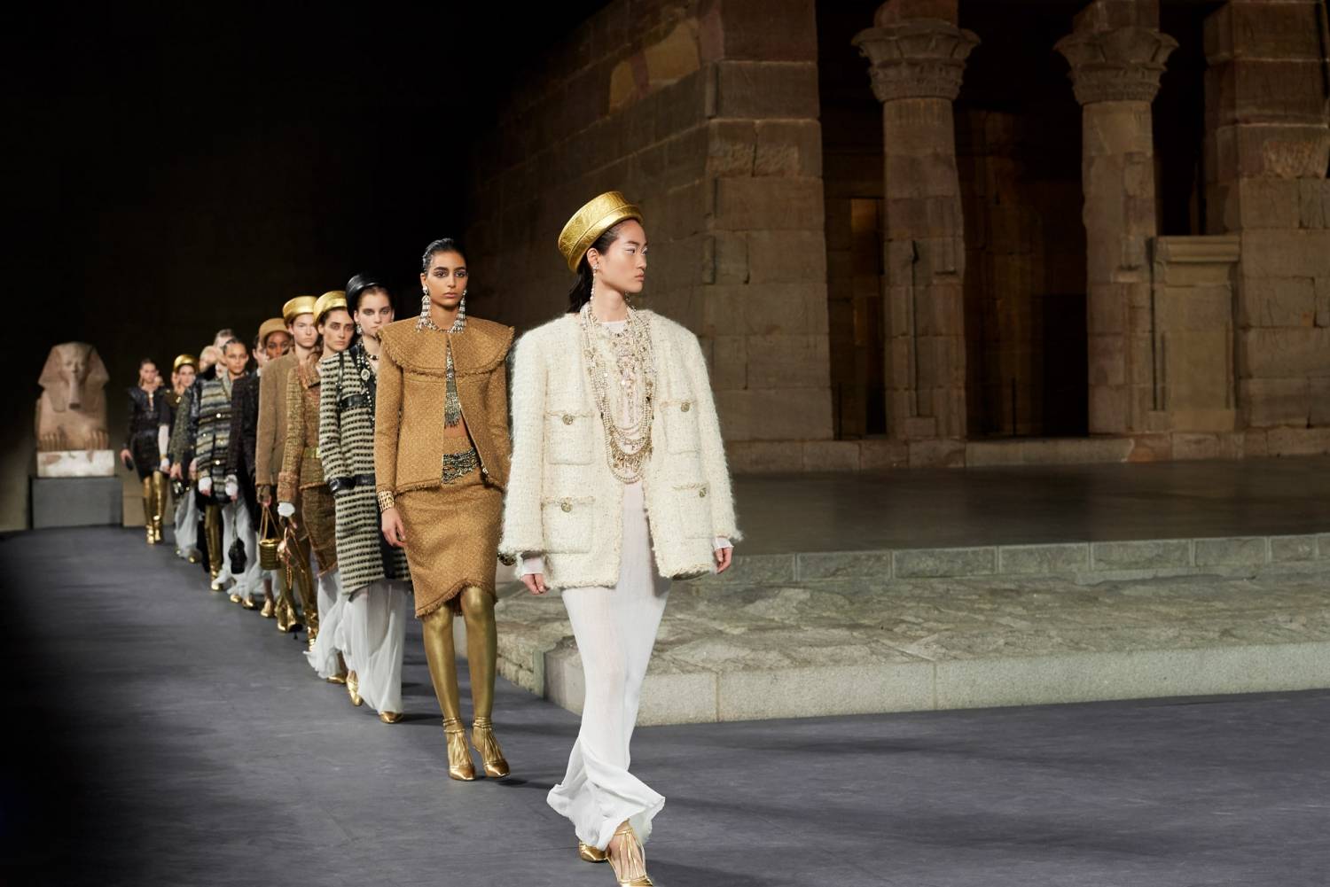 Локацией для шоу Chanel Métiers d’Art Карл Лагерфельд выбрал египетский зал нью-йоркского музея Метрополитен. Главной декорацией послужил храм Дендура — в древности там почитали богов, но в 1960 году египетское правительство подарило храм США. Вещи из коллекции получили название Luxe Or — эта аллюзия на имя египетского бога Люксора отлично передает смысл, вложенный в одежду Лагерфельдом. Люкса — а именно золота — на подиуме в тот день было очень много. Так, Фаррелл Уильямс появился перед зрителями в золотой обуви, штанах и свитере, модели носили позолоченные головные уборы, сапоги и твидовые жакеты.
