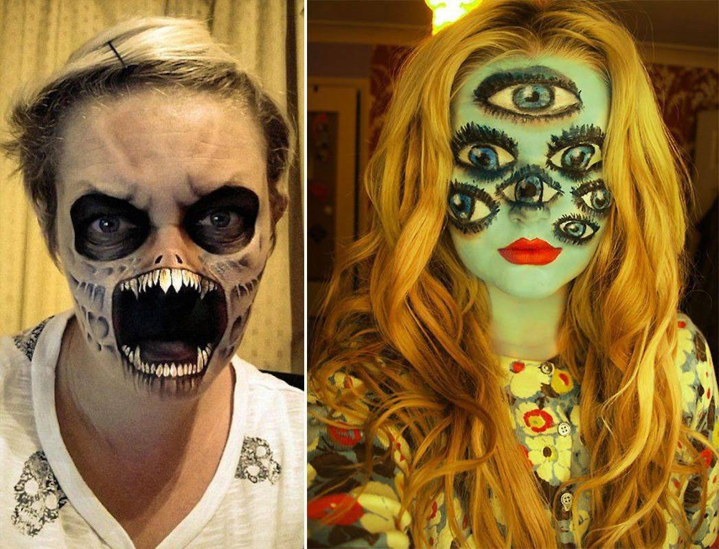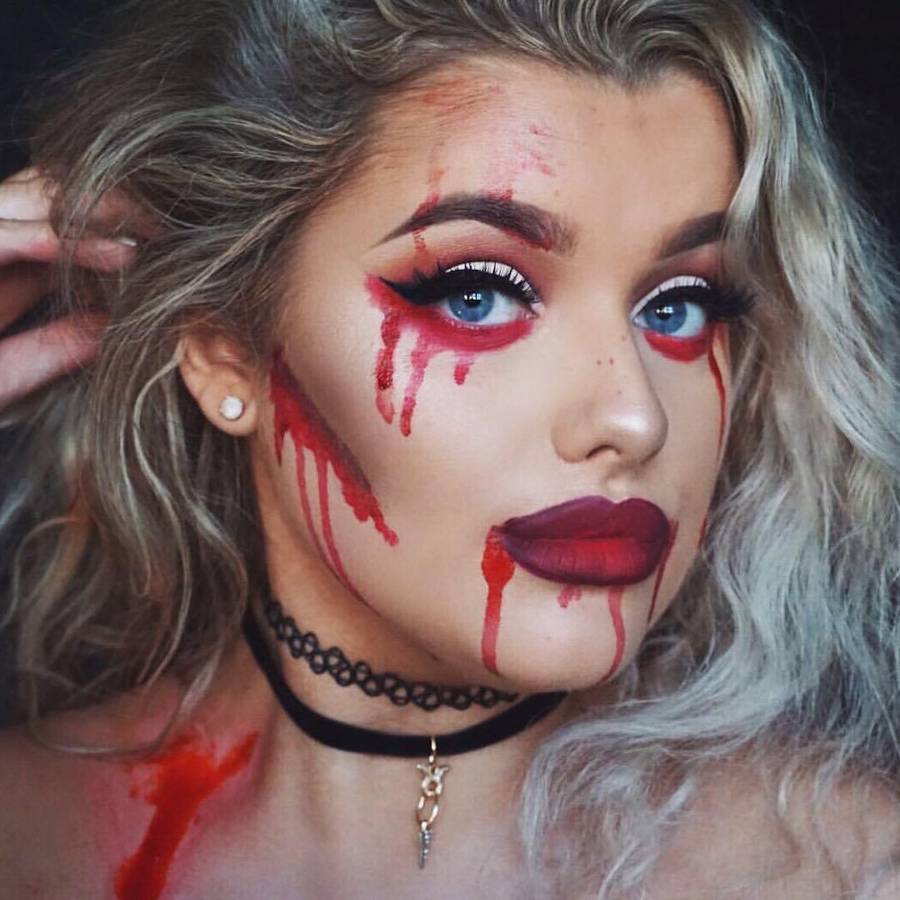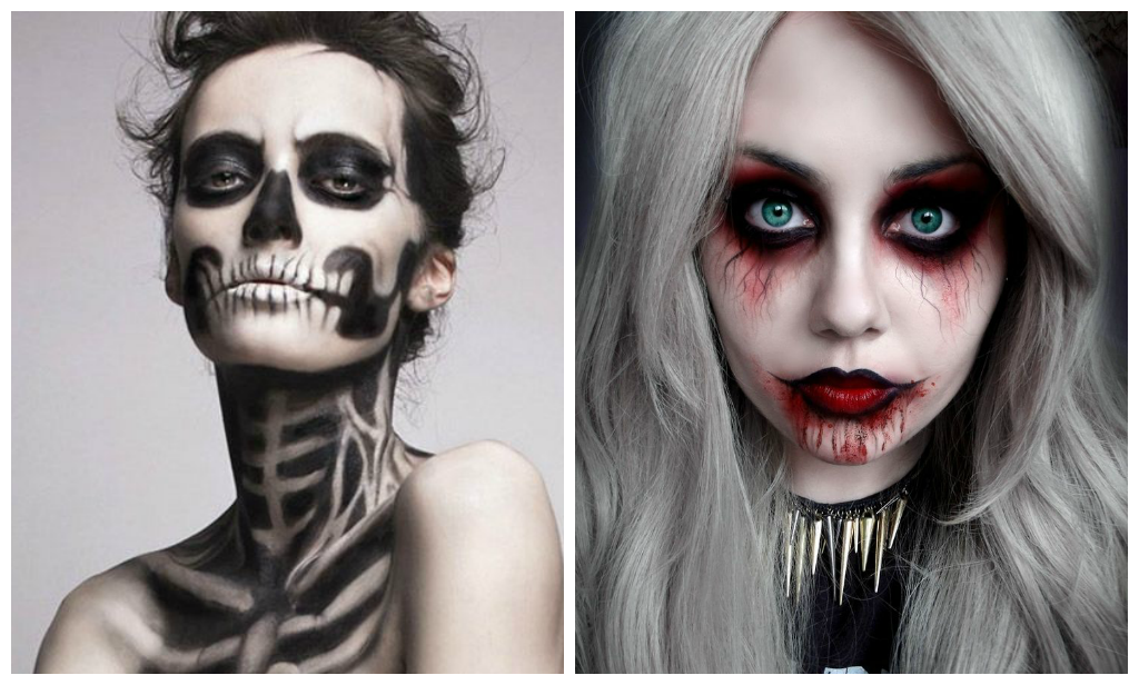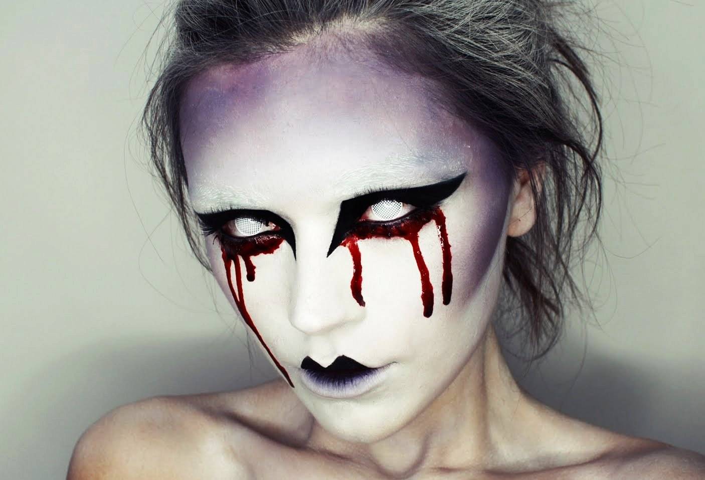 Без грима, соответствующего выбранному на Хэллоуин образу, не получается полноценный, хорошо продуманный праздничный костюм. Девушкам проще всего грим наносить обычной косметикой или специальными нетоксичными красками для кожи, часто продающимися в канун Дня Всех Святых. В домашних условиях нарисовать жутковатую маску с кровоточащими ранами или изобразить страшные шрамы на лице и руках совсем несложно. Стоит лишь внимательнее присмотреться к фото и несколько раз посмотреть видео, опубликованные на странице чуть ниже.