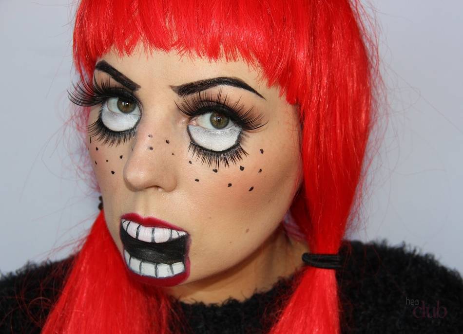 - Как сделать простой макияж интересным и подходящим для празднования Хэллоуина? Чтобы выглядеть ярко на подобной костюмированной вечеринке отнюдь не обязательно изобретать яркий и сложный мейкап. Даже простые приемы, которые не отнимут много времени и сил, смогут помочь вам выглядеть на празднике эффектно. Прежде всего, попробуйте своим макияжем слегка увеличить губы — нарисуйте карандашом их контуры больше, чем есть на самом деле. Также не останавливайтесь в уголках губ — продлите линию так, чтобы ваш рот всегда был в улыбке — так вы приобретете знаменитое выражение лица из фильмов ужасов. Наконец, накрасьте глаза тенями разных цветов — это даст потрясающий эффект. Усилить его можно, если вставить контактные линзы — сейчас есть интересные варианты специально для празднования Хэллоуина. Наконец, такой красивый макияж на Хэллоуин можно украсить накладными стразами и наклейками.
