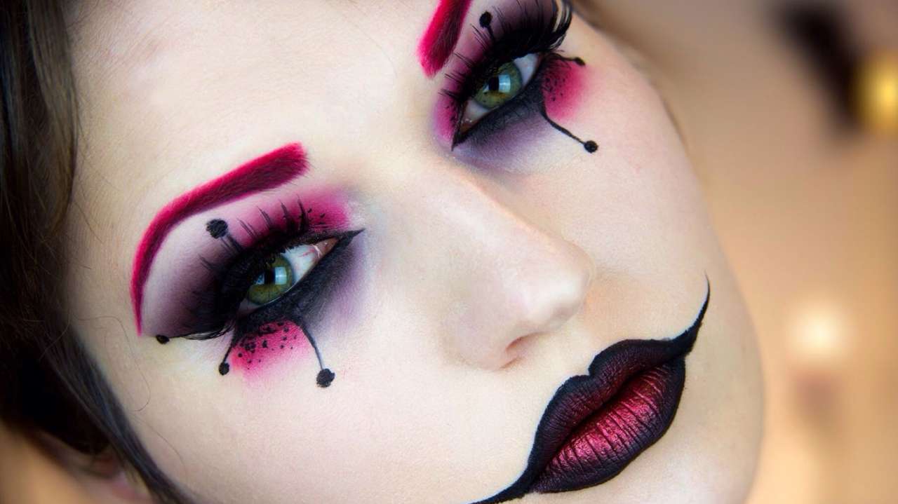 Макияж для Харли весьма прост. Если вы блондинка – задача упрощается. Вам нужно затянуть два хвоста синей и розовой резинкой. Причем, с каждой стороны резиночка определенного цвета – и, соответственно, такого же цвета половина ваших волос. Со стороны розовой – затеняете хвост розовым мелком для волос, со стороны синей – синим мелком. Сойдет и тоник, но после празднества вам еще около недели-двух придется походить с разноцветной головой. Брюнеткам можем посоветовать надеть парик, хотя и брюнетки могут затонировать волосы мелками, и образ будет вполне узнаваем.