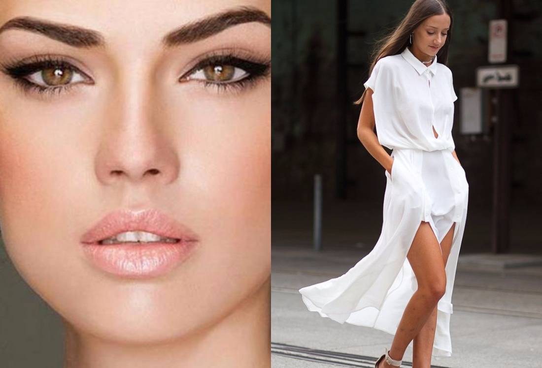- светлый оттенок в одежде хорошо сочетается с мейком глаз в стиле смоки айс с использованием шоколадных или золотисто-коричневых теней;