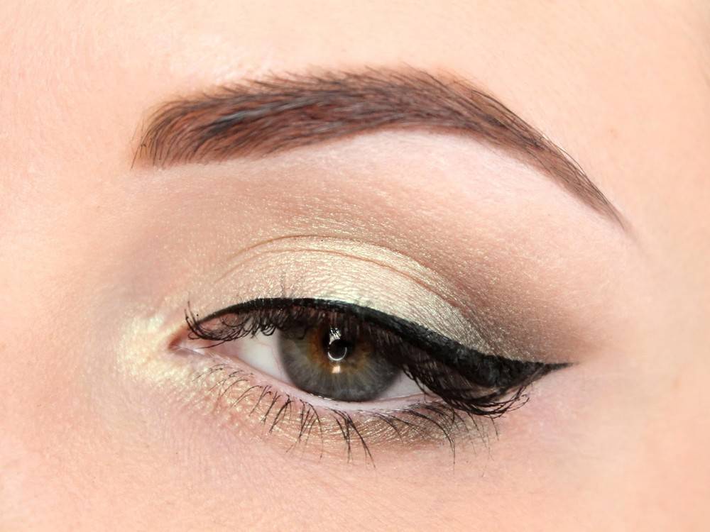 Золотые либо горчичные оттенки идеально подойдут для вечернего макияжа. При этом глаза стоит подчеркнуть лишь карандашом с тушью. Веки стоит покрыть тенями с бежевой палитрой