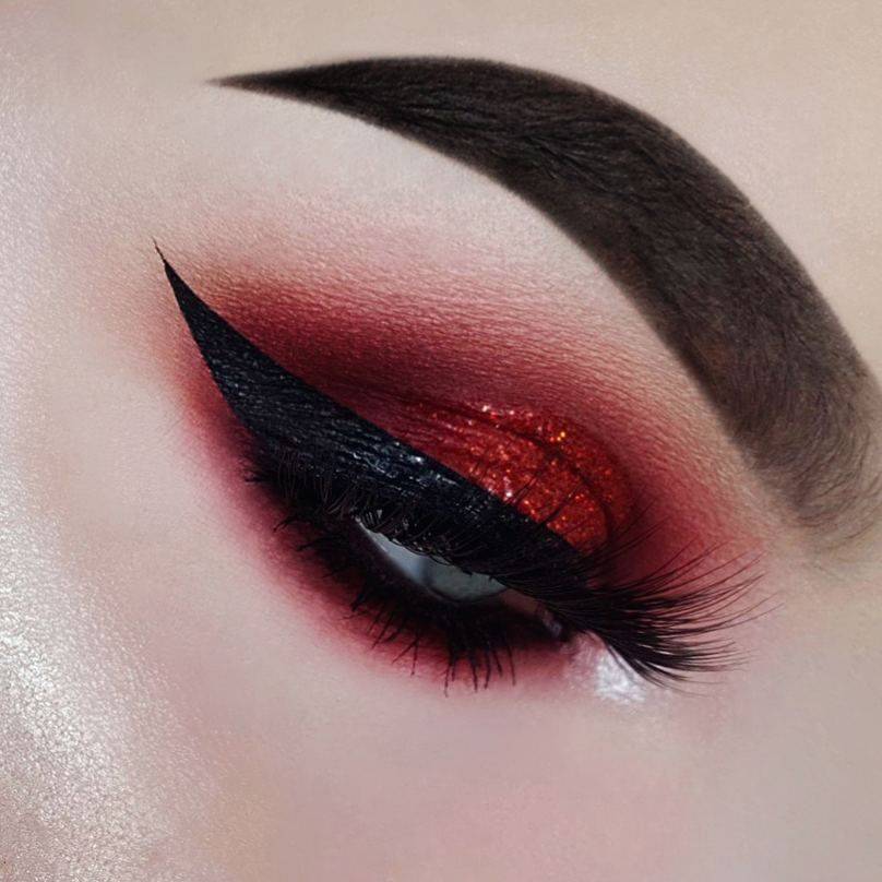 Здесь необходимо руководствоваться своим бюджетом, замыслом и навыками. Недорогим вариантом будут однотонные тени от корейских производителей, которые не жалко будет выбросить по окончании моды на них. В магазинах люксовой косметики представлены, в основном, более мягкие оттенки красного. Если же главная цель – максимально выделиться, то обращаться нужно к неформальным брендам.