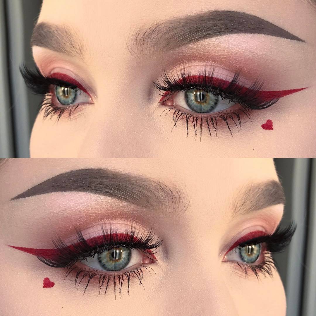 Лучше всего красные тени подойдут девушкам с голубым, зеленым и серым цветом глаз. Именно в таком тандеме, красный будет выгодно подчеркивать цвет глаз и делать взгляд более выразительным.