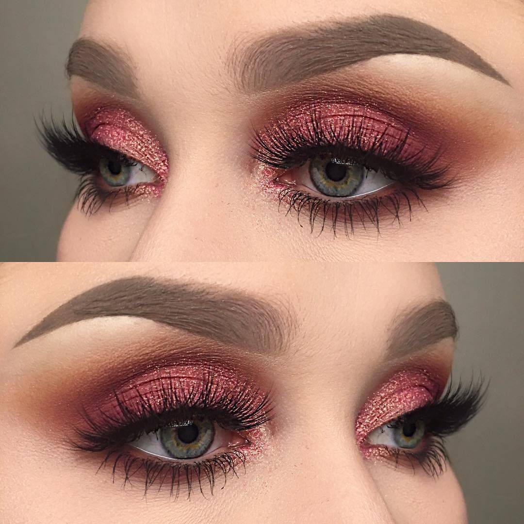 Как ни странно, такие яркие цвета теней, как красный и бордовые, идут обладателям любого цвета глаз: и карим, и зеленым (с которыми работают по принципу контрастных цветов на цветовом круге), но, пожалуй, лучшим образом бордовые оттенки подчеркивают синие, голубые и серо-голубые глаза.