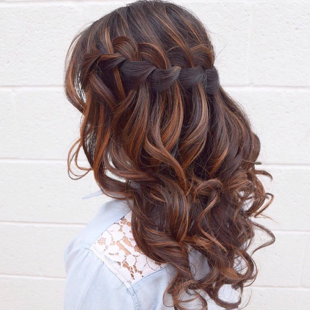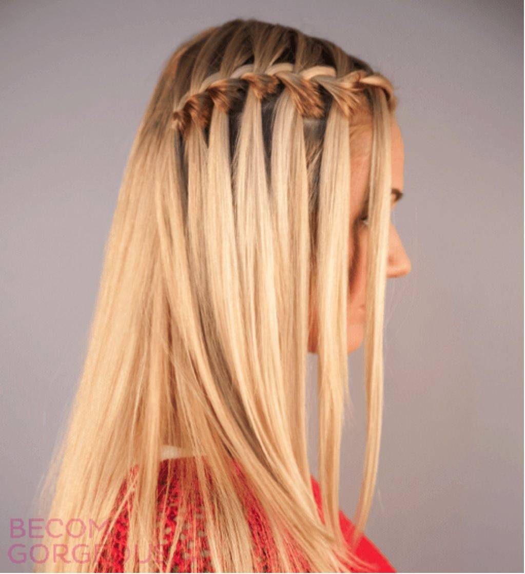 Прическа «французский водопад» подойдет обладательницам коротких и средних волос. Основная задача прически – убрать с лица постоянно спадающие пряди и зафиксировать их эффектной косичкой.