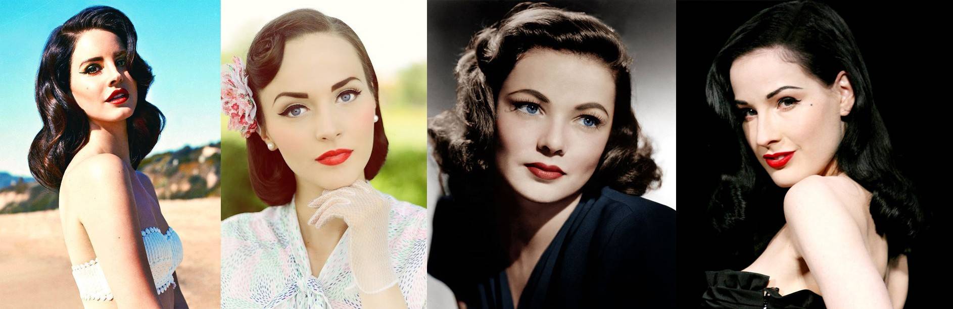 Брови и глаза стоит подвести карандашом или подводкой. Тени должны быть лиловыми, серыми, синими или болотными. Для такого макияжа важен не блеск, а именно помада. Потому что цвета ее призваны манить и заставлять прикоснуться к сладкому меду женских губ. Выбирать нужно алые, терракотовые, вишневые и оранжевые оттенки. Цвет «пыльной розы» или персика не теряет своей популярности и сегодня: стилисты активно используют его, создавая ретро-макияж, многочисленные фото это подтверждают.