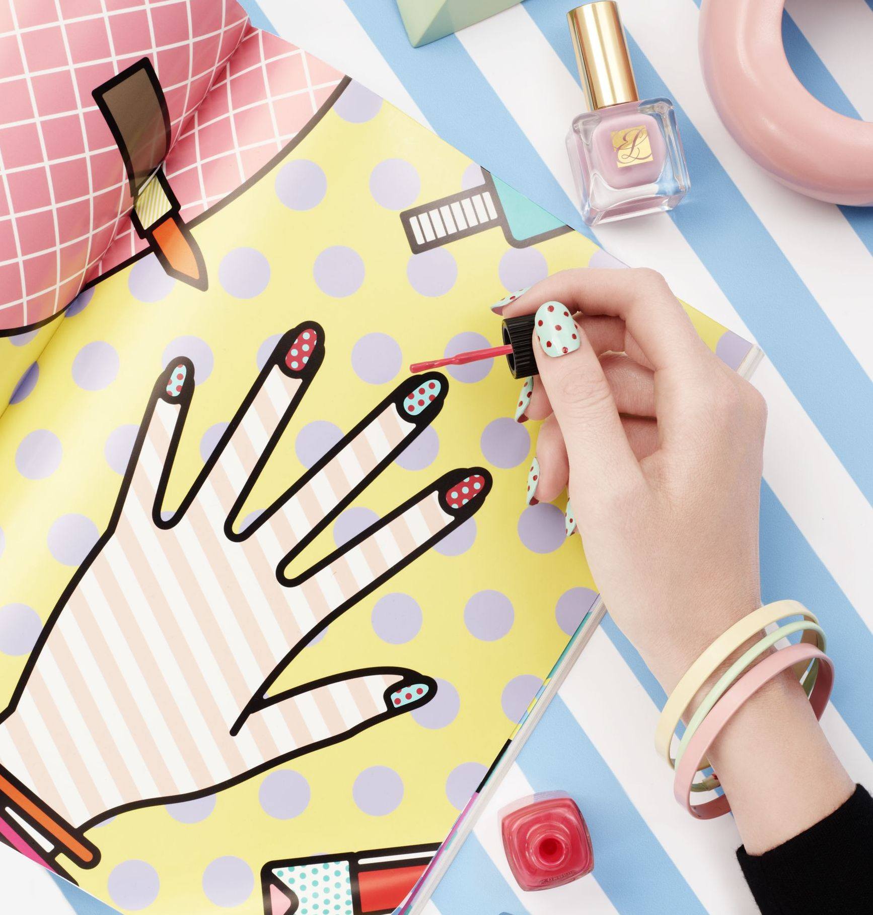 Прекрасной идеей будет оформление каждого ногтя в разном стиле, но с учетом единой пастельной палитры. В таком дизайне можно взять за основу игру фактур, простые линии, вставки в технике «негативное пространство» и очаровательный рисунок в горошек.