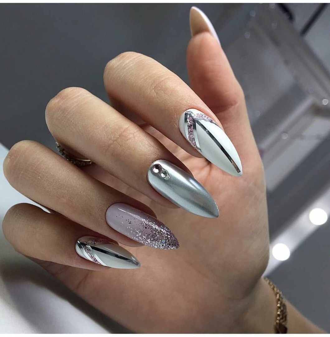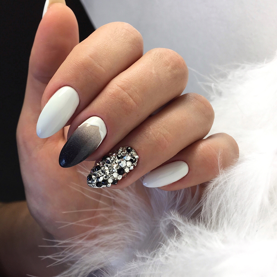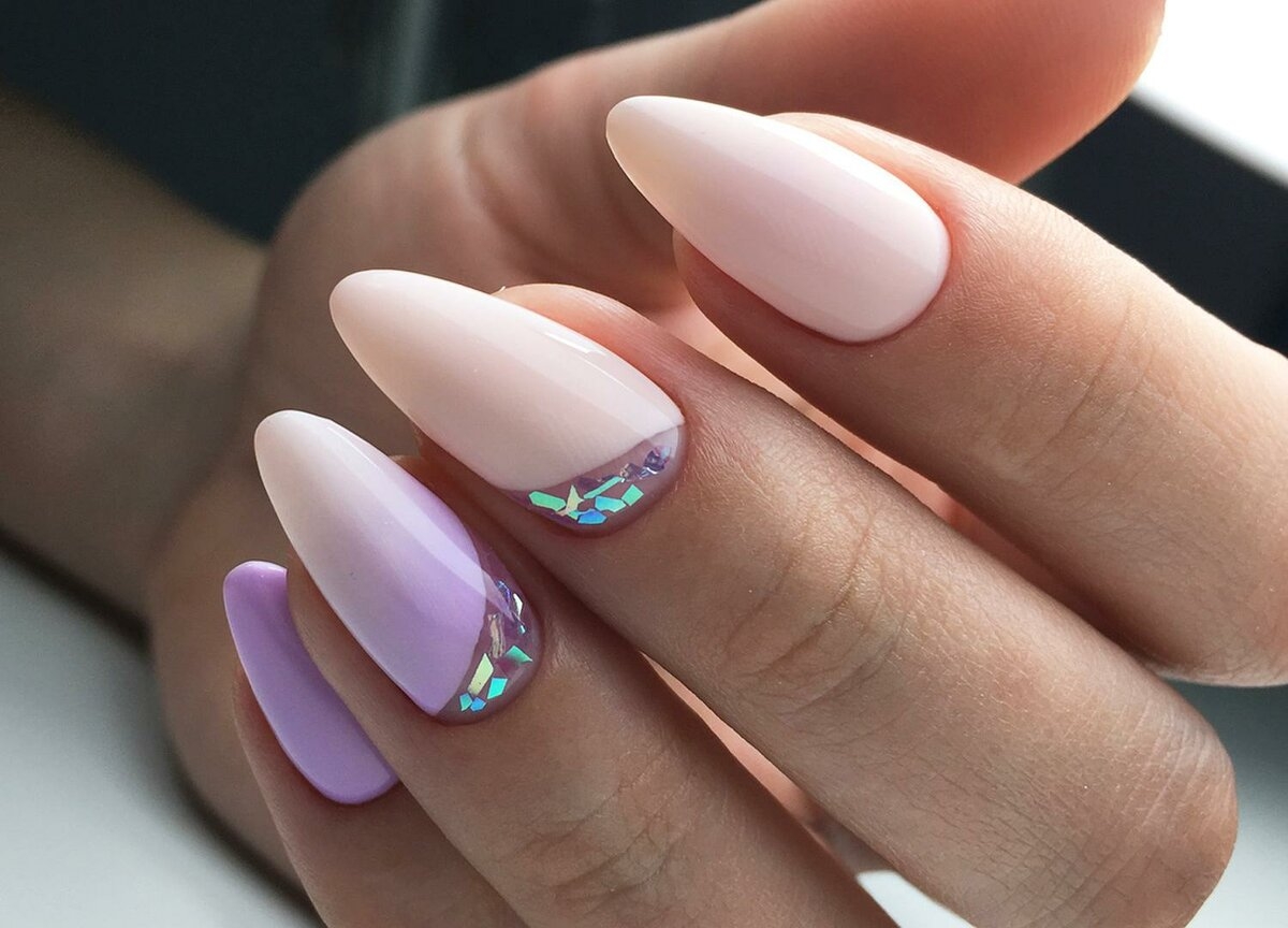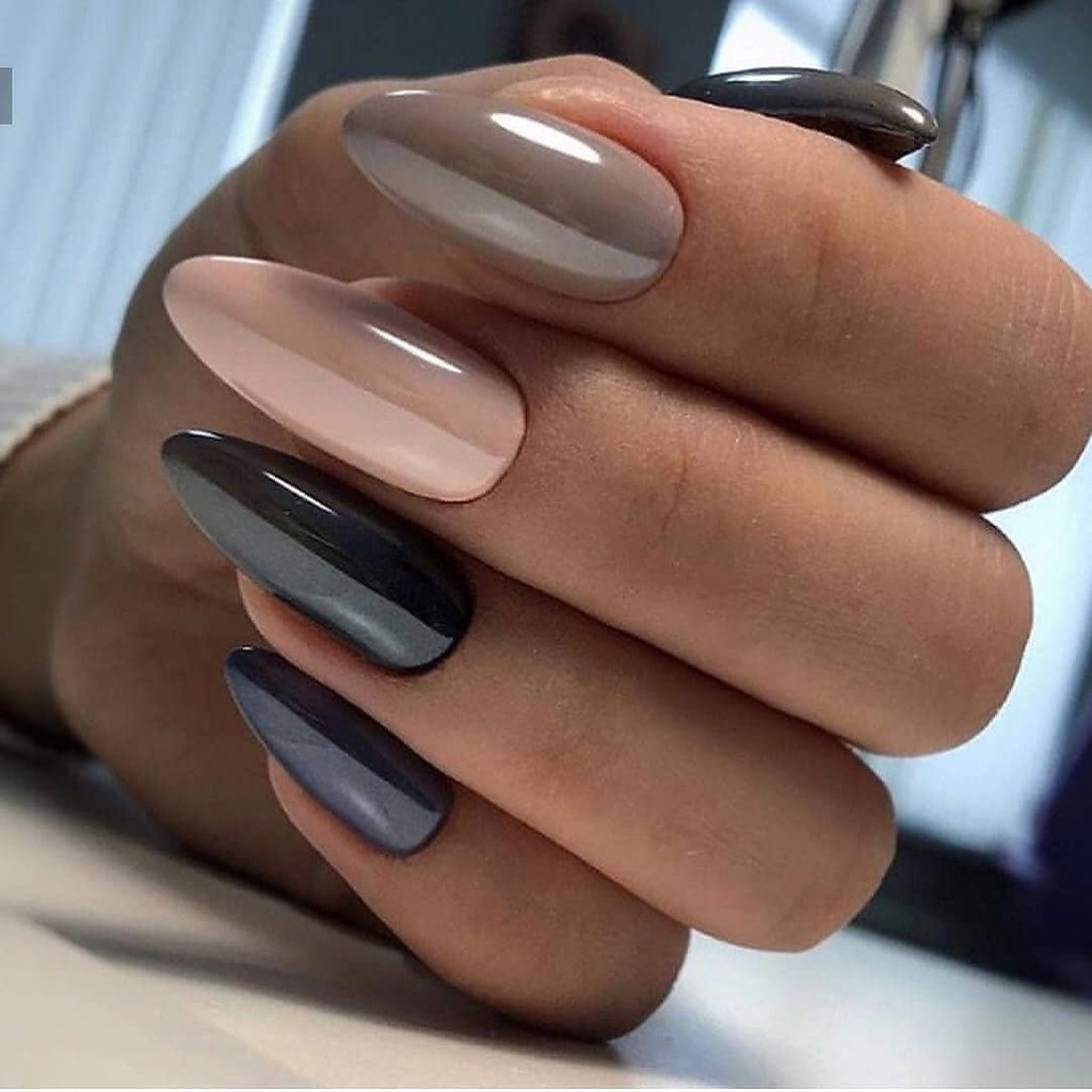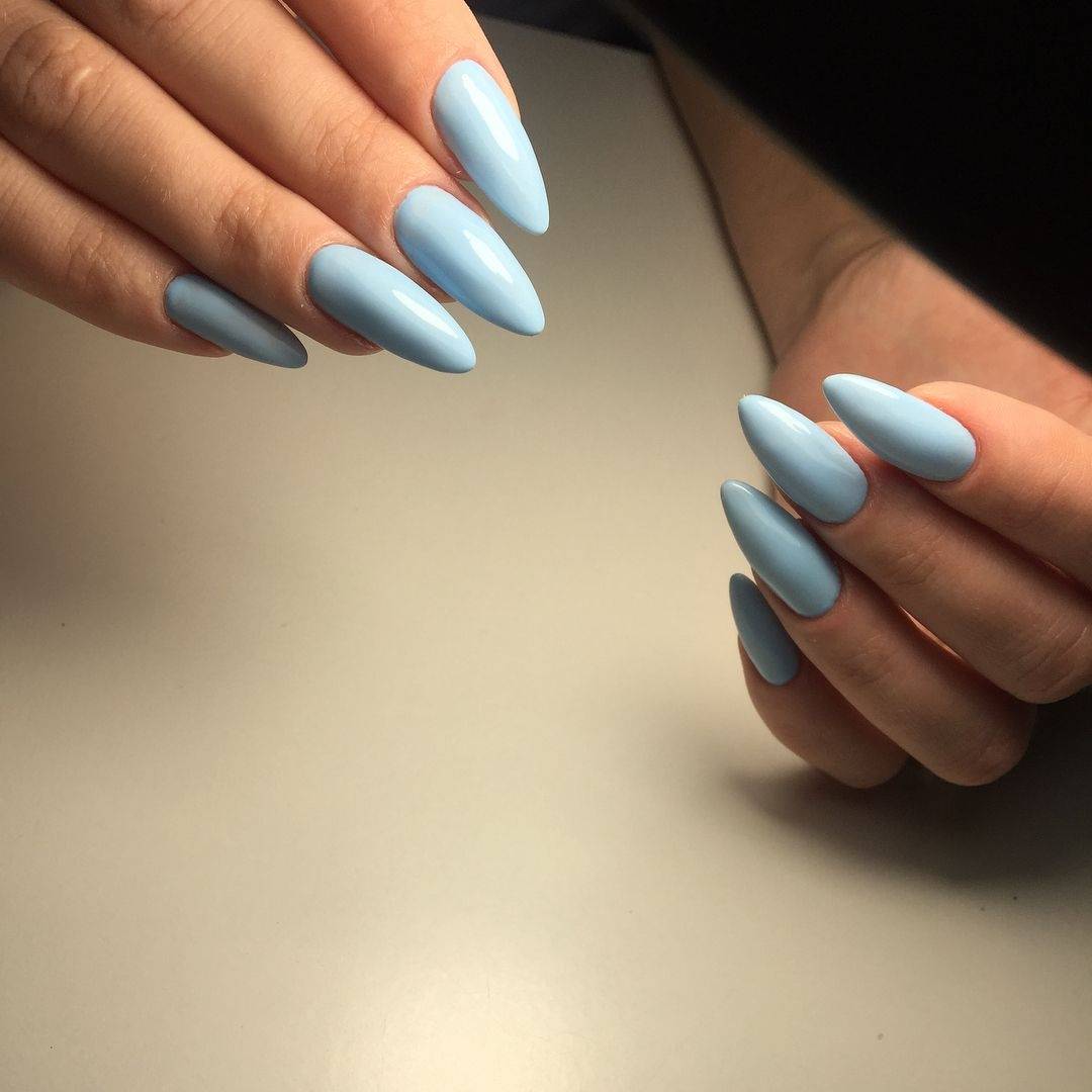 Миндалевидная форма. Она отлично подойдет обладательницам длинной и узкой ногтевой пластины. Также на таких ногтях будут превосходно смотреться нюдовые оттенки, пастель или популярные сегодня цветовые переходы. Не стоит отказываться от глянцевого и металлического покрытия.