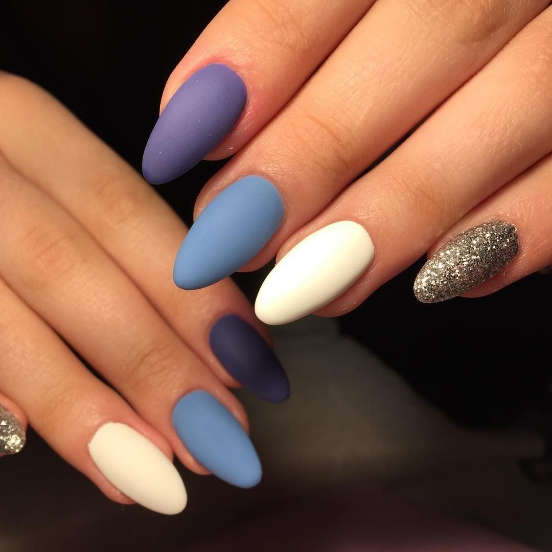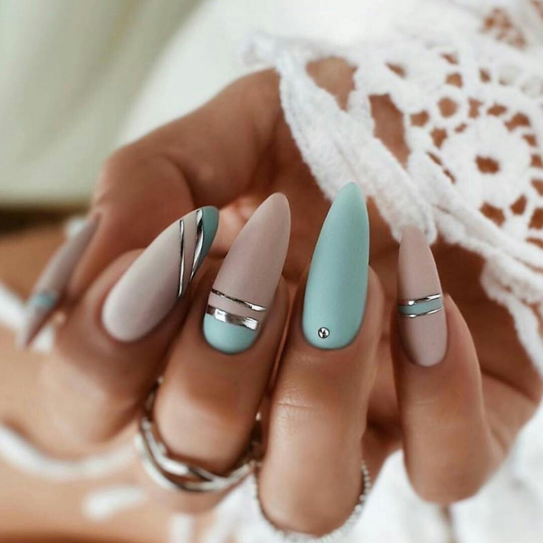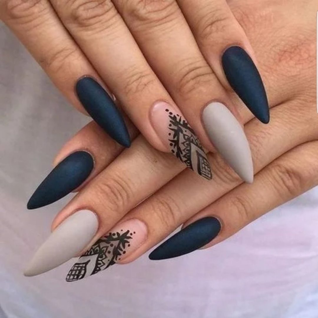 Матовый маникюр на ногтях острой формы