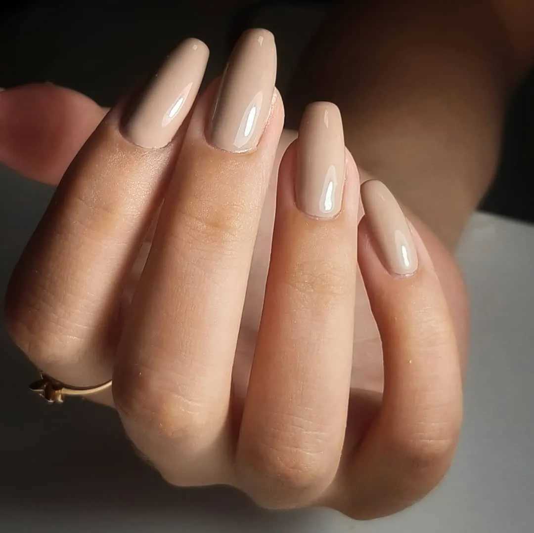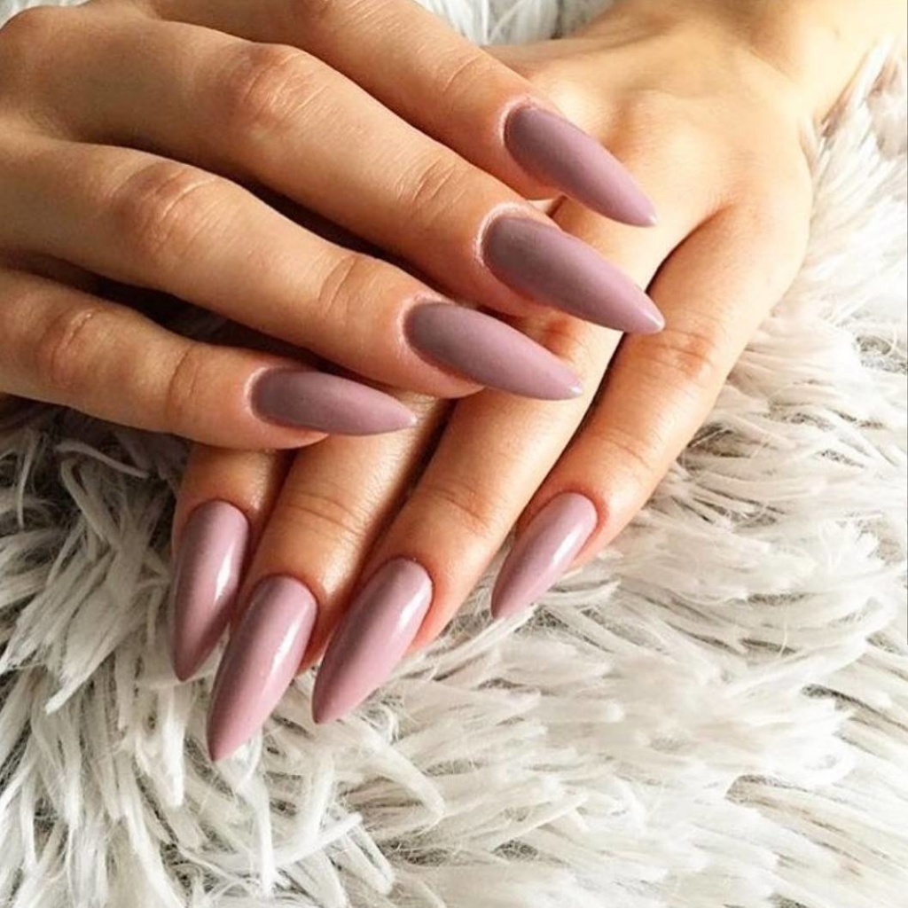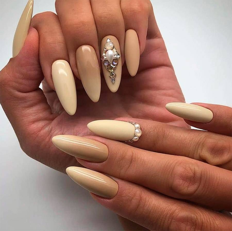 Повседневный маникюр на длинные острые ногти в стиле nud