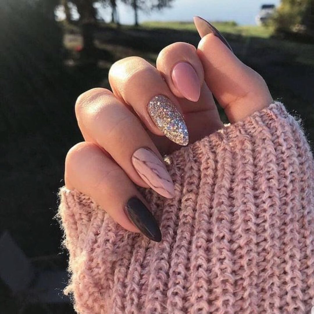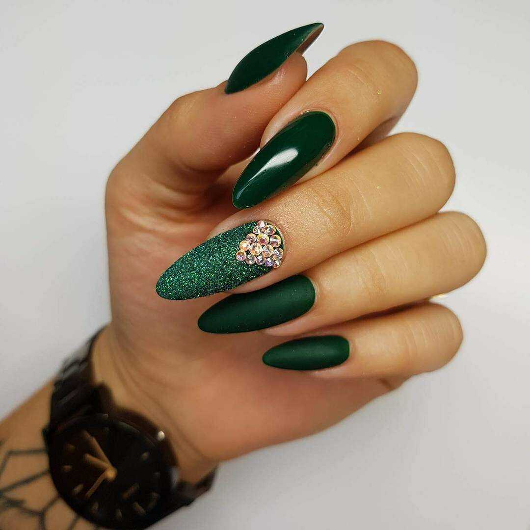 Красивый дизайн с блестками на длинные ногти